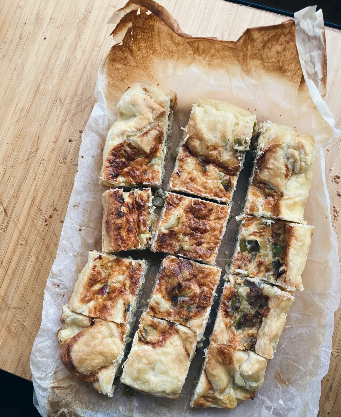 Já jsem upekla pórkový koláč, jen nám ho pak třetinu sežral pes.
