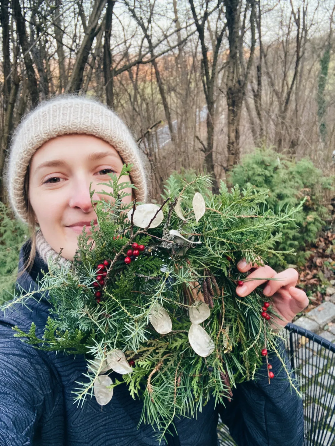 S kamarády jsme šli rovnou na procházku a pro jehličí. Každý rok mě tak nějak překvapí, že už bude 1. advent a věnec většinou pletu na poslední chvíli. Včera tomu nebylo jinak.