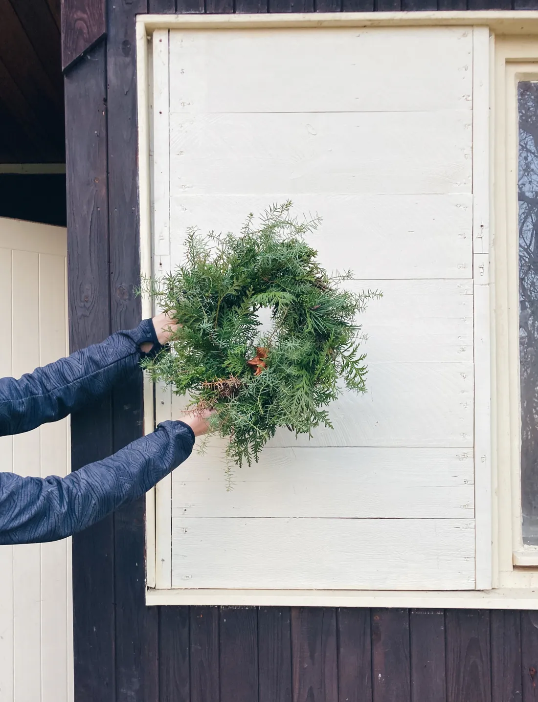 Venku, když nejmladší dítka usnula v teplých peřinách, jsme se s kamarádkou pustily do pletení. Přivezla jsem si s sebou zahradnické nůžky, drátky a korpus na věnec, který každý rok používám znova. Druhý korpus jsem upletla ze suché trávy.