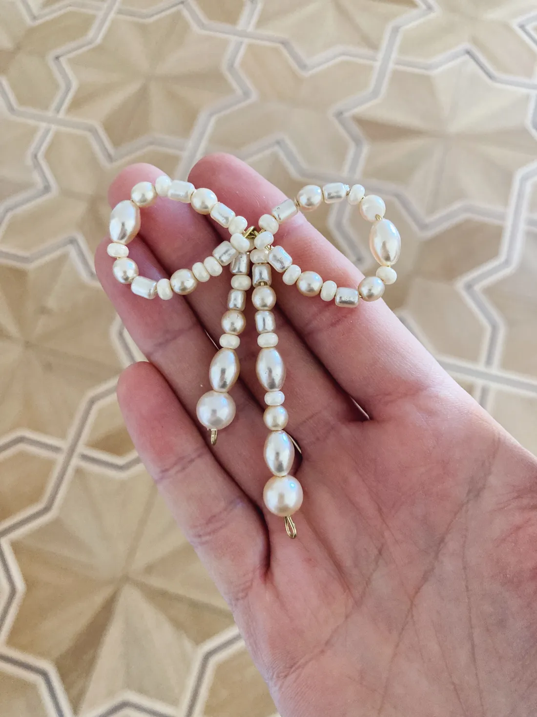 Mašličku z korálků, ty jsem navlekla na pevný drátek a umotala tvar mašle.