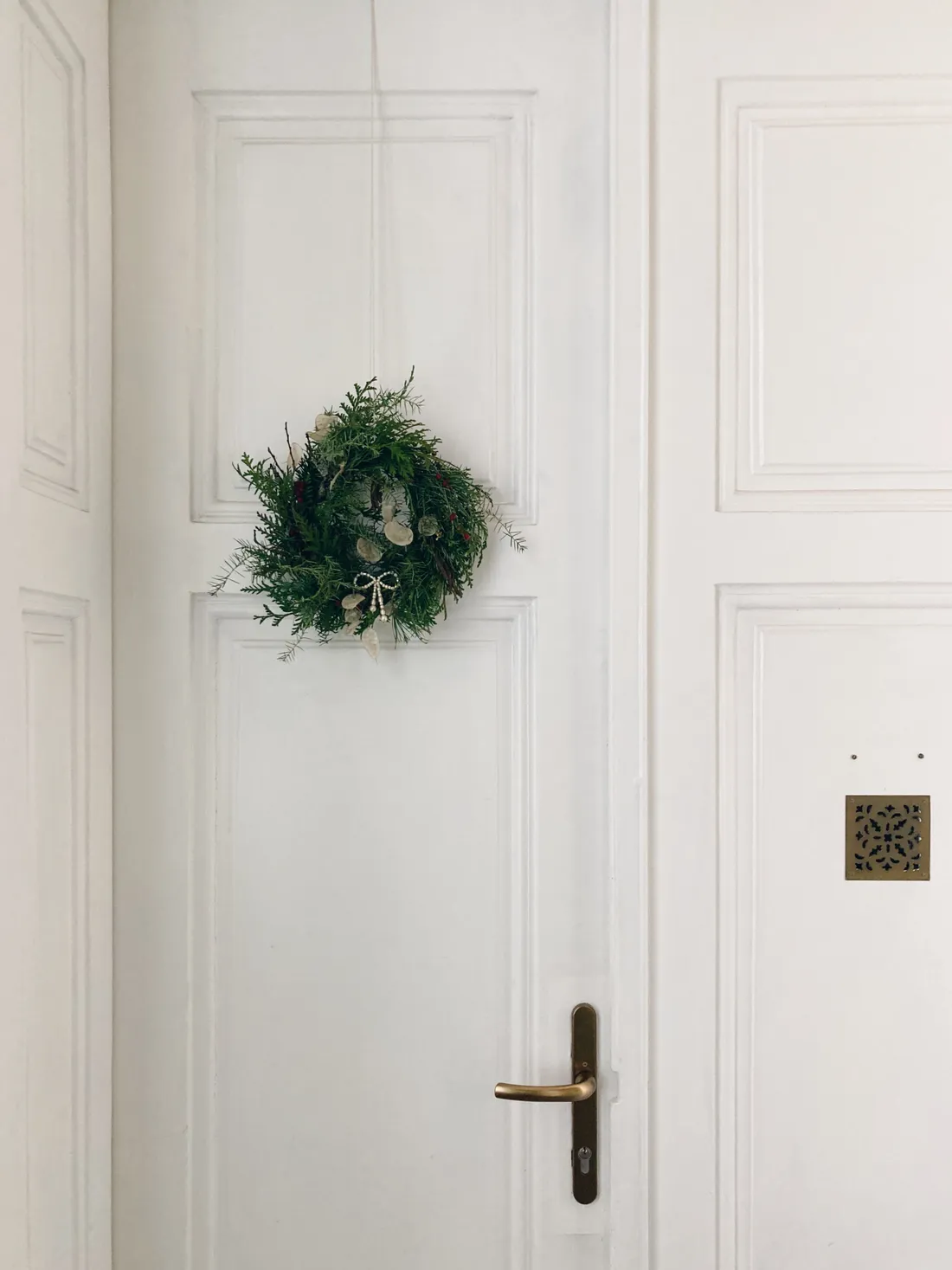 A už visí! Věneček i perlová mašlička. Možná mašliček udělám víc a budeme je letos mít i na stromečku.