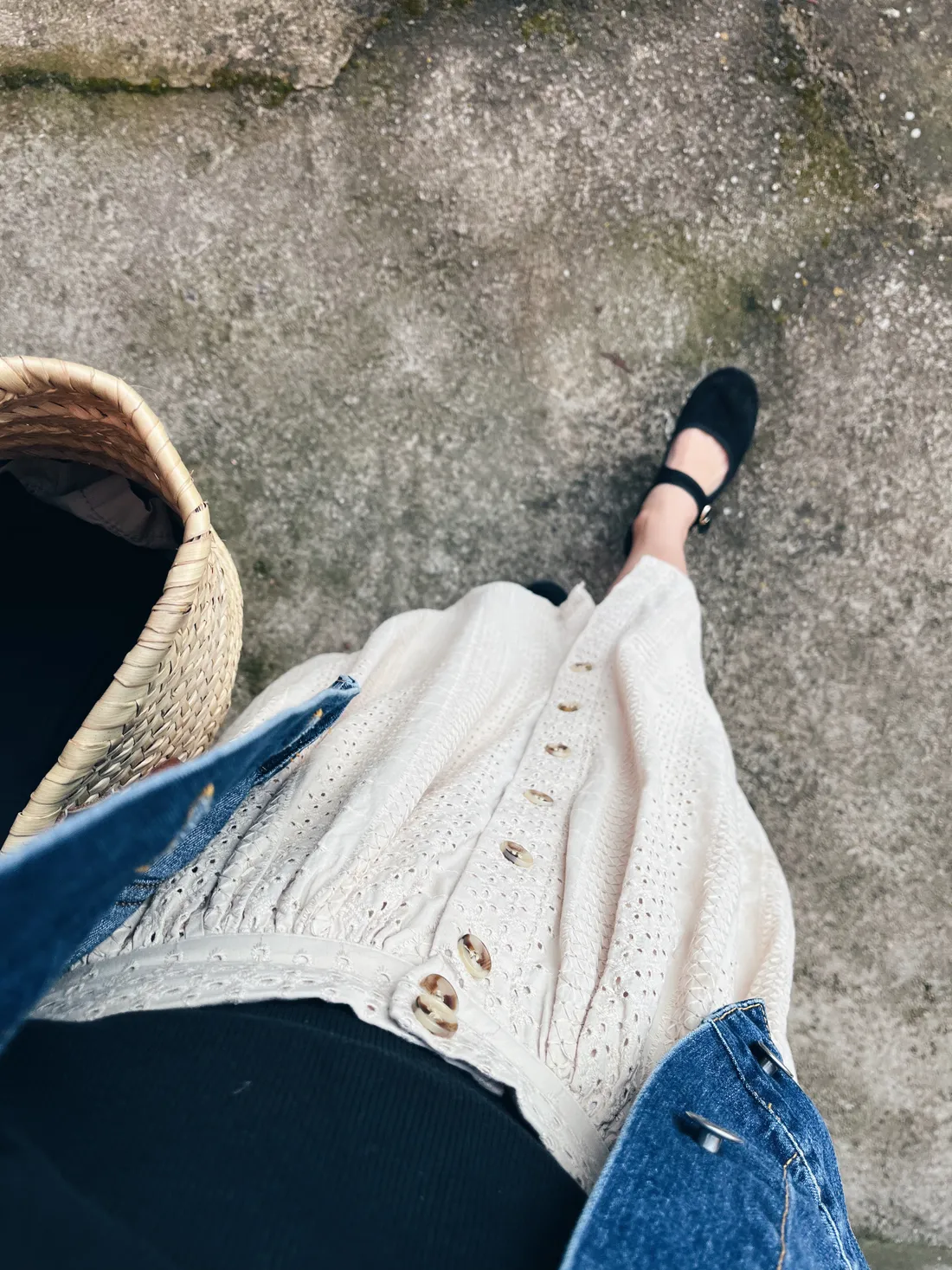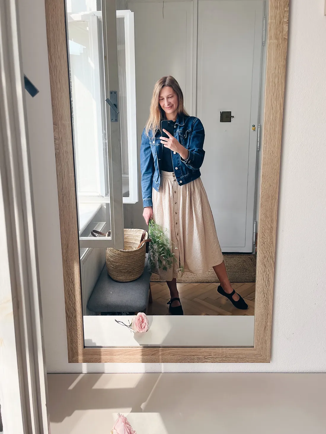 Ve čtvrtek jsem na sobě měla tutéž sukni z Vinted. Vlastně jsem celý týden točila jen pár kousků, dělávám to tak docela často.