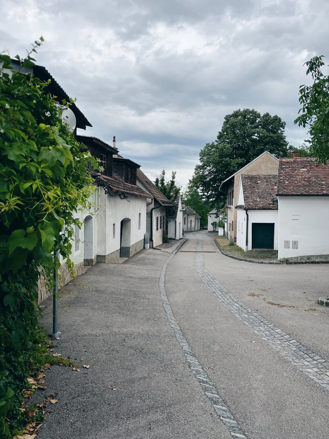 V sobotu ráno jsme děti odvedli k babi, kde byly celý víkend. Využili jsme volného času a jeli jsme do rakouského Hollabrunnu. Můj muž jezdil ve skatebparku, já jsem s Čotym šla na osmikilometrovou procházku. Cesta začíná mezi vinnými sklepy, které jsou skoro všechny sladěné do bílo-zelené kombinace.