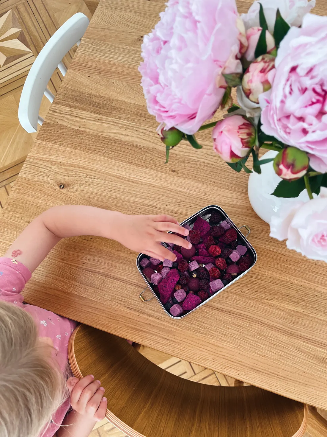 Dcerka měla hlad a pustila se do lyofilizovaného ovoce, tohle je MYX Fialka ze Světa plodů.