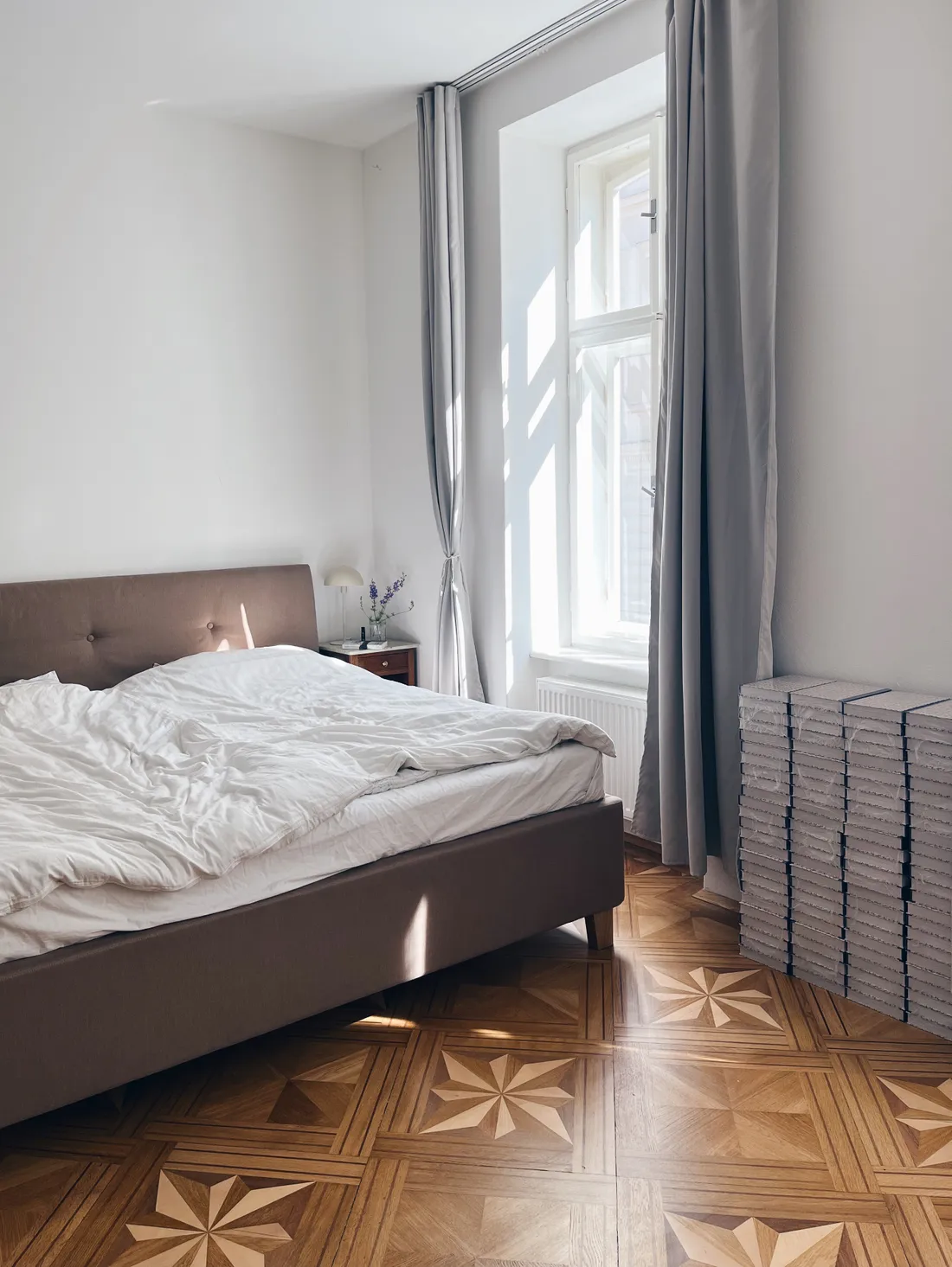 Zde vidíte pozdně odpolední světlo v naší ložnici (a stohy kuchařek všude kolem). A to je všechno z víkendu, mějte se mi hezky!