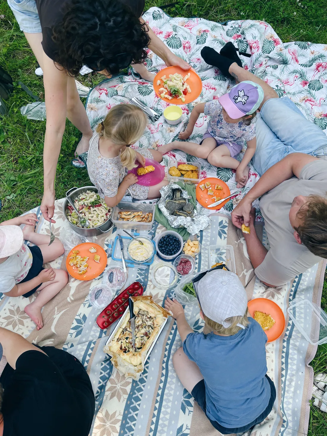 Dopoledne jsme se s kamarády potkali v Kravsku, šli jsme na procházku kolem opuštěného zámku, rybníka a do lesa. Odměnou byl piknik, kde si každý našel to svoje. Měli jsme řízky, těstovinový salát, quiche, sušené salámky a sýry a spoustu dalších dobrot. A hlavně kupu hladových dětí!