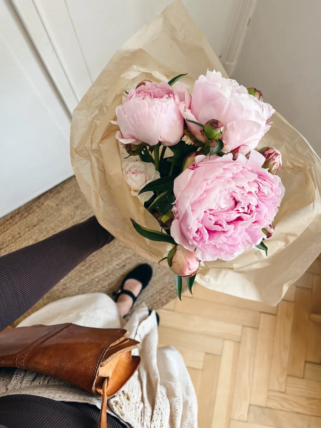 A pak na trh, kde Řezanka prodávala tyhle přenádherné pivoňky. Vždycky jsem chtěla mít pugét z pivoněk, ale nikdy se mi to nepoštěstilo, tyhle jsou navíc zodpovědně pěstované ve Znojmě. Dvojnásobná radost.