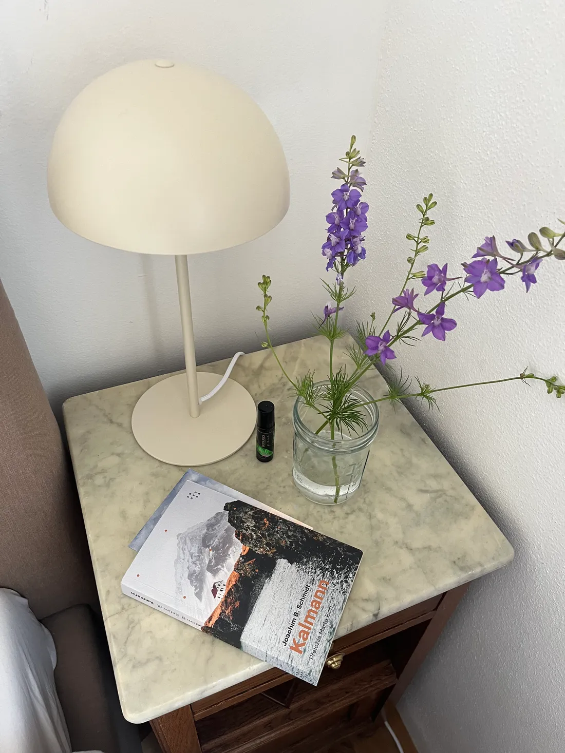 Celý den jsem se cítila trochu divně a motala se mi hlava, takže manžel vzal děti ven a já jsem byla víceméně doma. Trochu jsem uklízela, natrhala a kytky do vázy na noční stolek. Momentálně mám rozečtenou islandskou detektivku Kalmann.