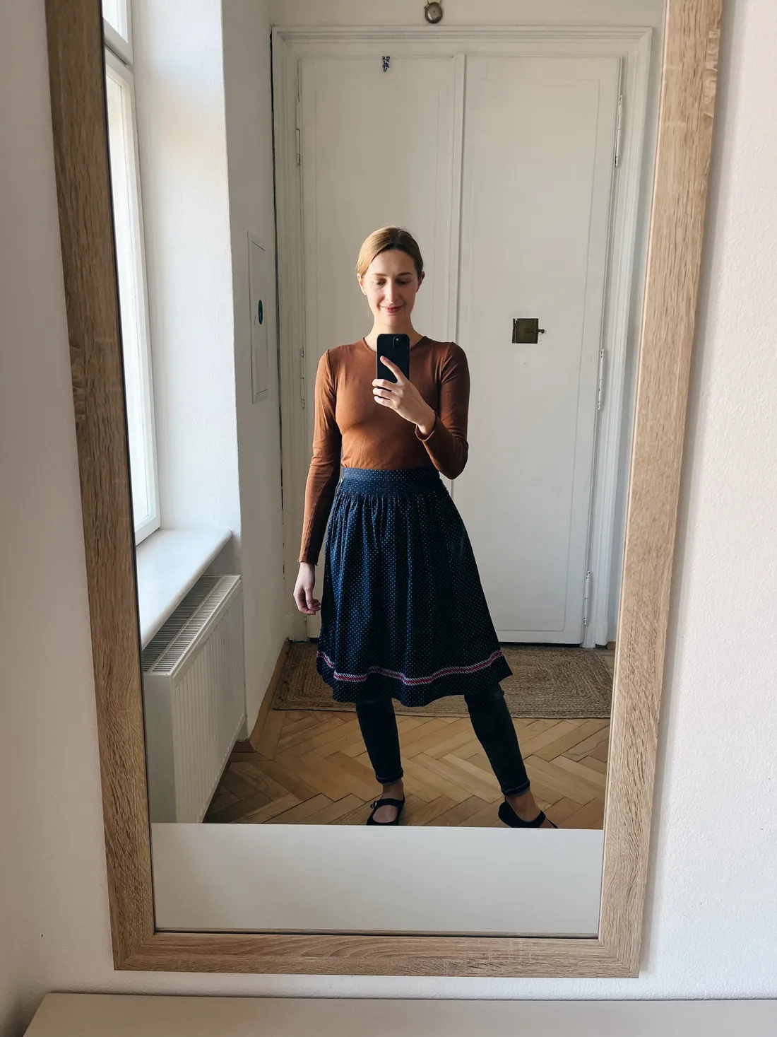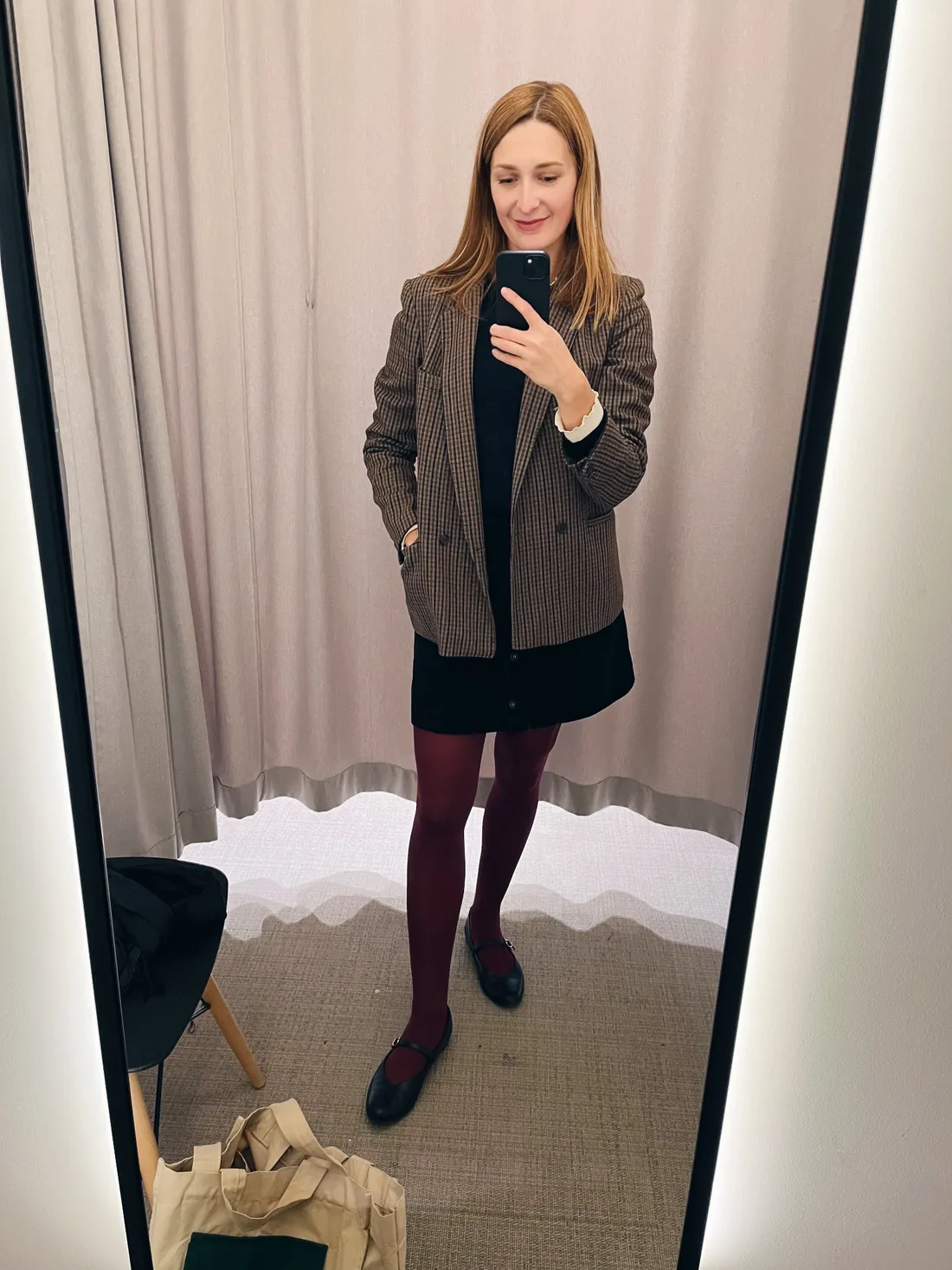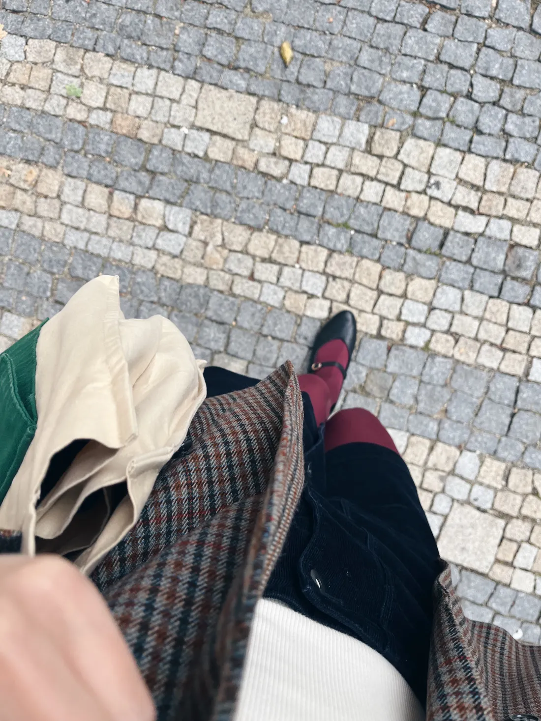 Já jsem na sobě měla oblíbenou manšestrovou sukni a vlněné sako před lety nalezené v sekáči.