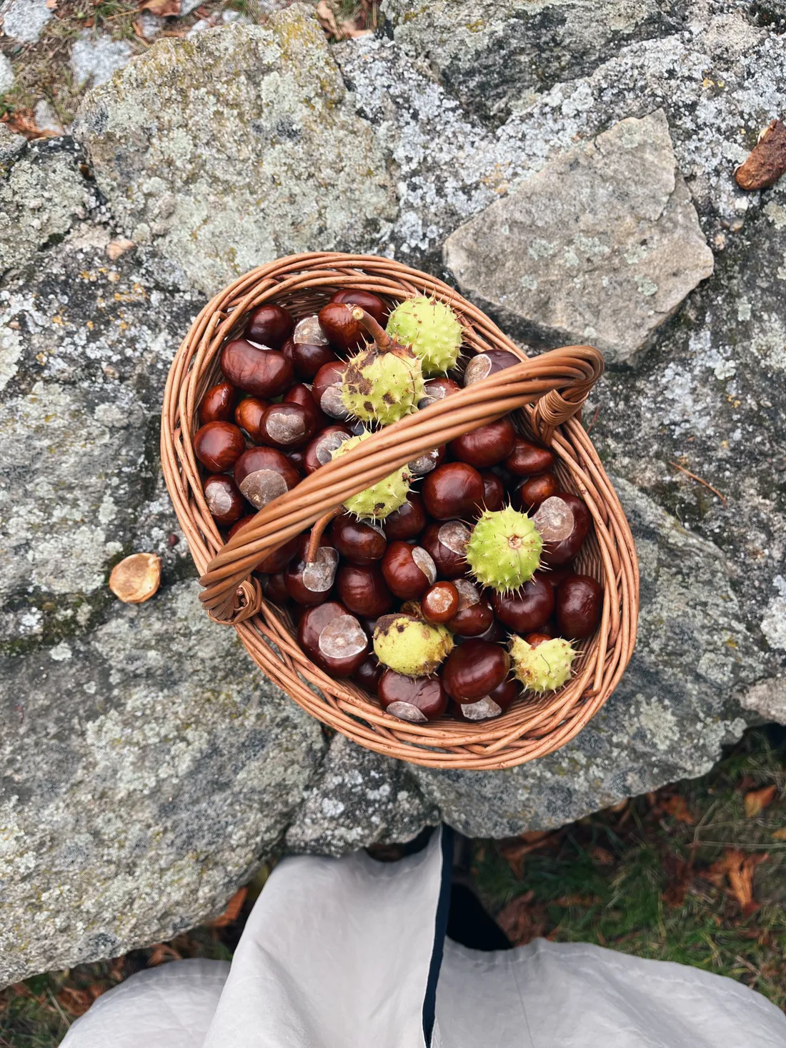 Šli jsme do parku sbírat kaštany. Zbožňuju jejich hebkou strukturu.