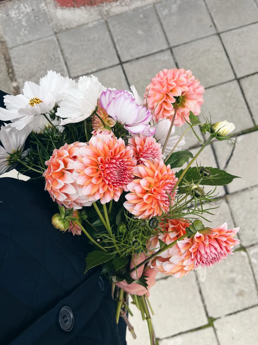 Ostříhala jsem poslední jiřiny na záhonu, některé už na sobě měly pomrzlé lístky, a bylo mi líto nechat je všechny přejít mrazem. Místo toho mi doma dělají radost ve váze.