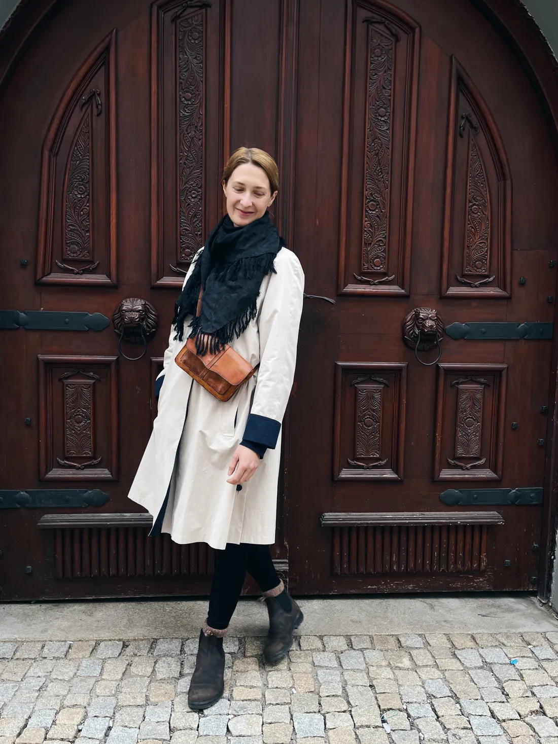 Se synem jsme vyrazili na procházku a udělal mi hezkou fotku. Na sobě mám kabát ze sekáče, šálu po babičce a kabelku po tetě.