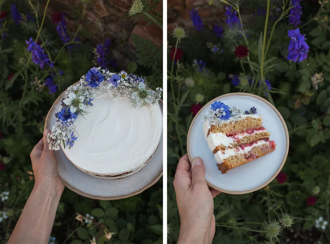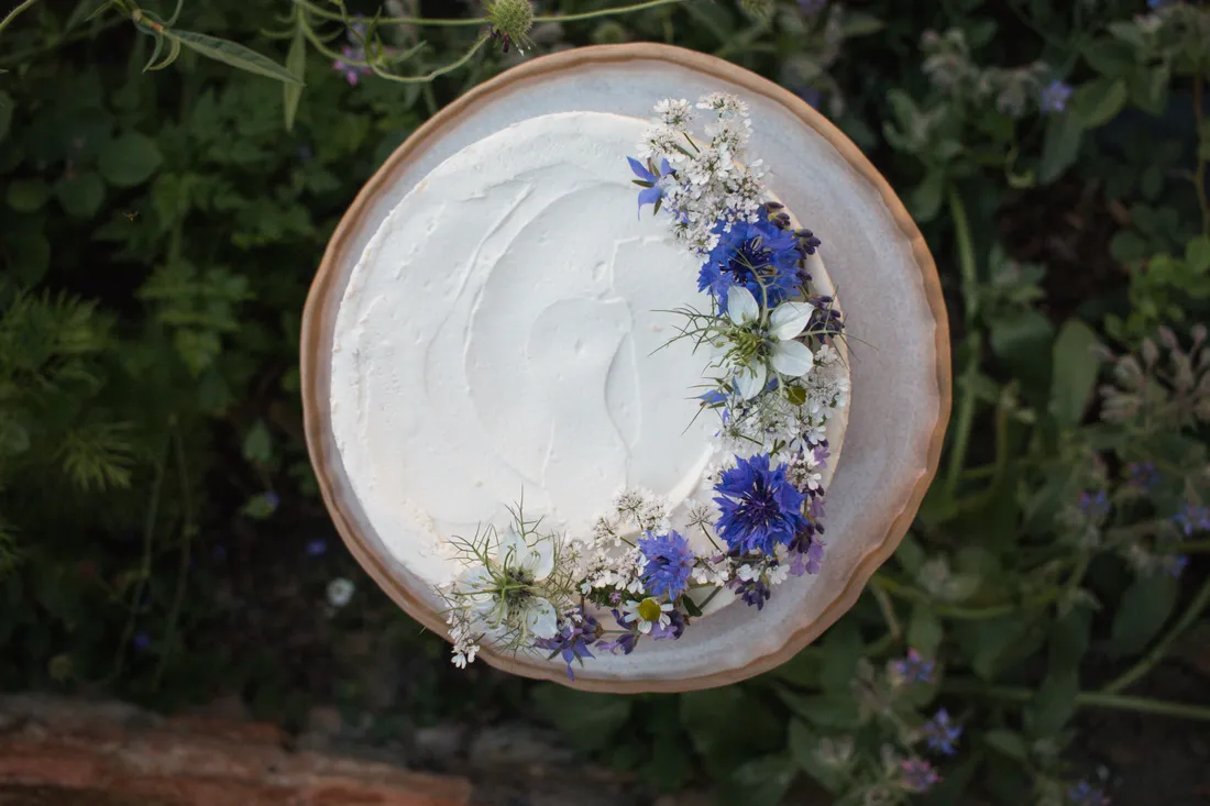 - Hotový dort ozdobte jedlými květinami a snězte během 2 dnů.