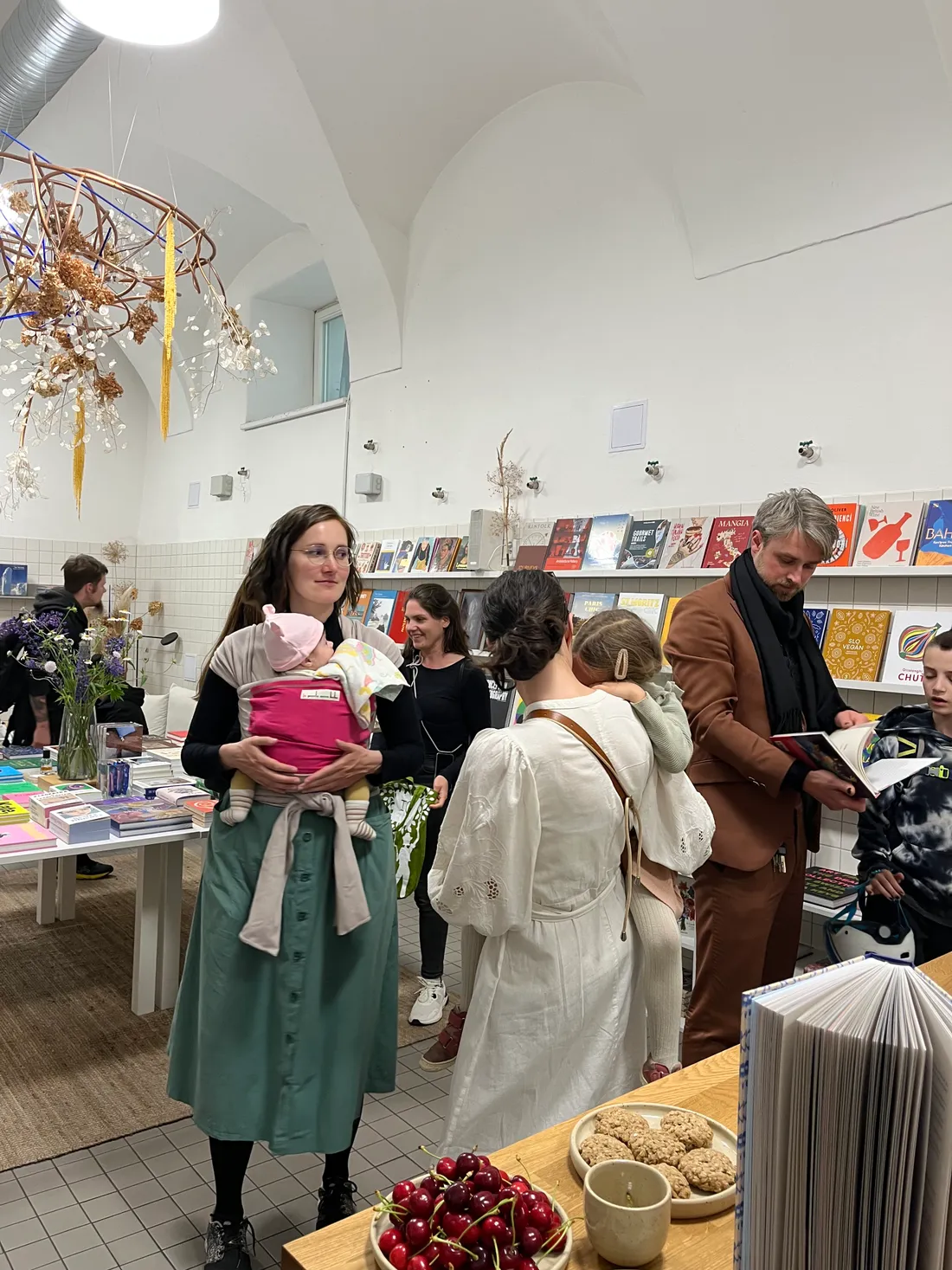 A pak už byl čas pokřtít kuchařku! V Book Therapy se sešli moji kamarádi, rodina a čtenáři. Knížku jsem pojně pocukrovala (čti pokřtila) moučkovým cukrem, přiťukli jsme si vínem a bylo to. Děkuju vám všem, kteří jste přišli!