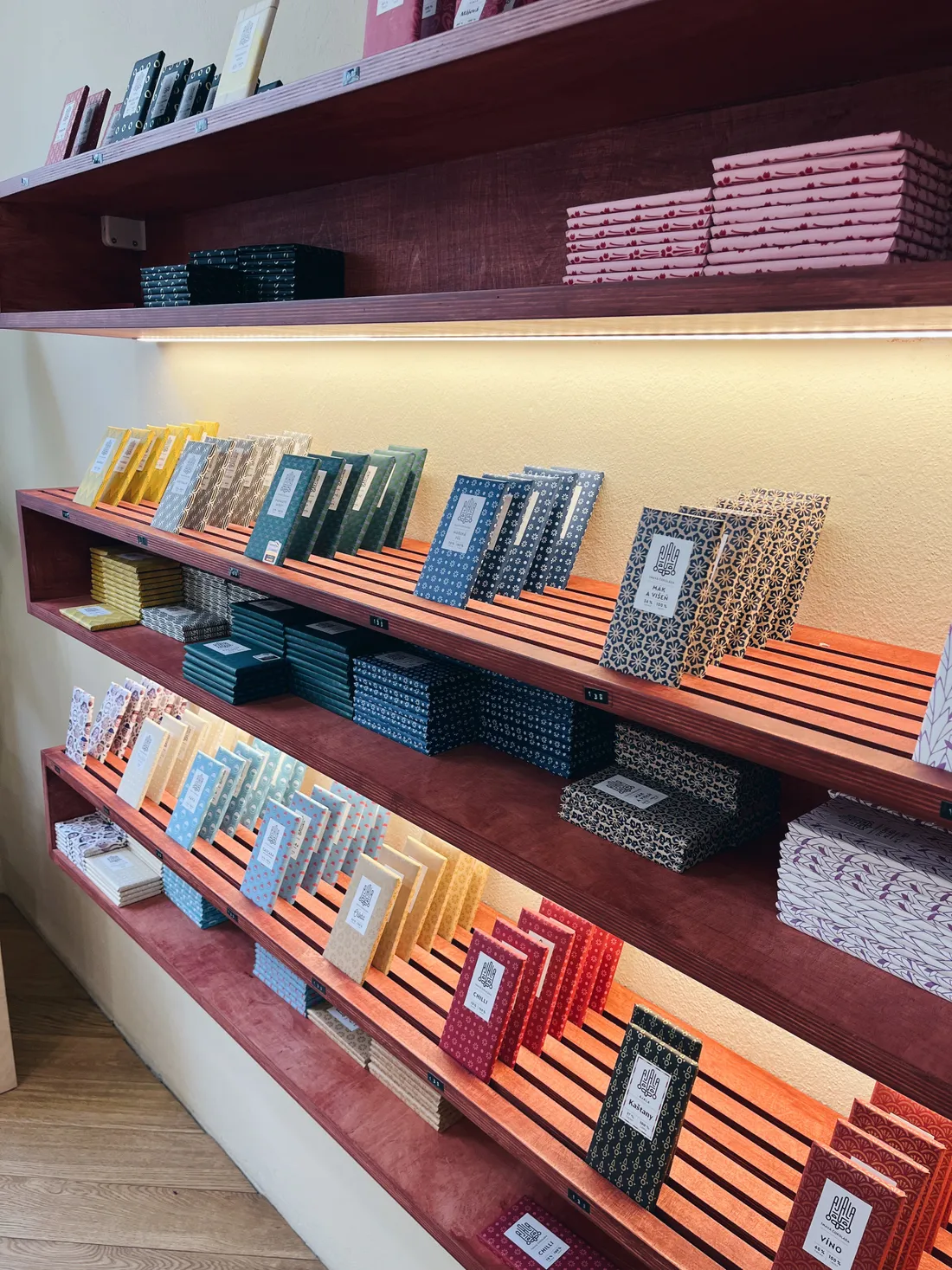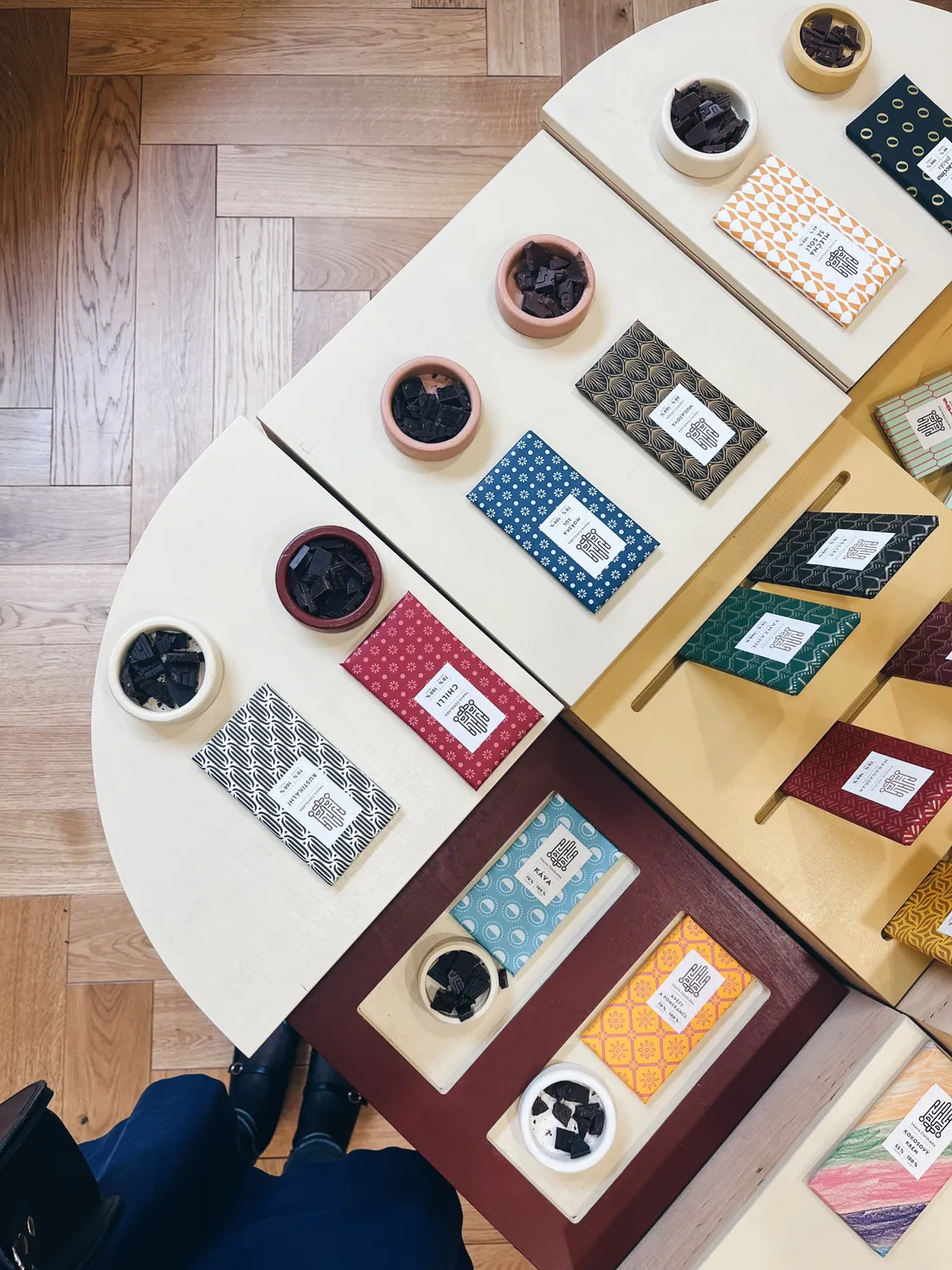 Do obchůdku můžete přijít a všechny čokolády tam ochutnat. Moje nejoblíbenější je ta se solí, rustikální, nugátová, a 100%.