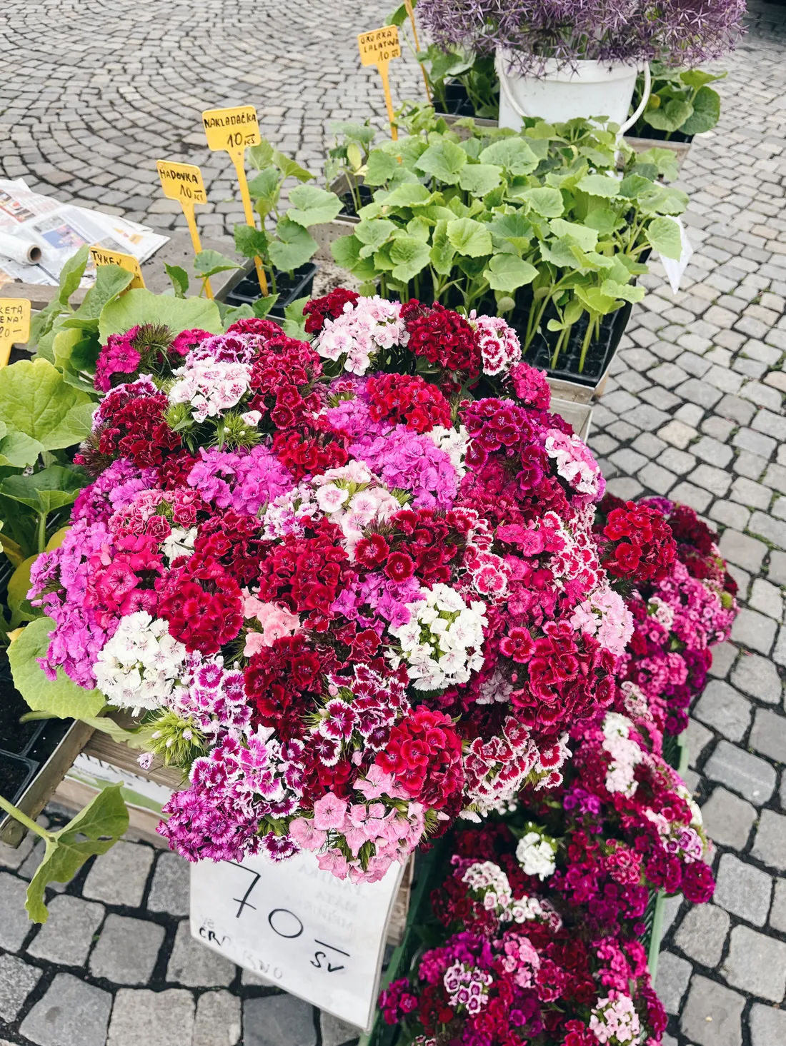 Líbí se mi, že na trzích prodávají ty stejné babičky jako před čtyřmi lety. K téhle jsem pravidelně chodívala pro kytky a sazeničky.