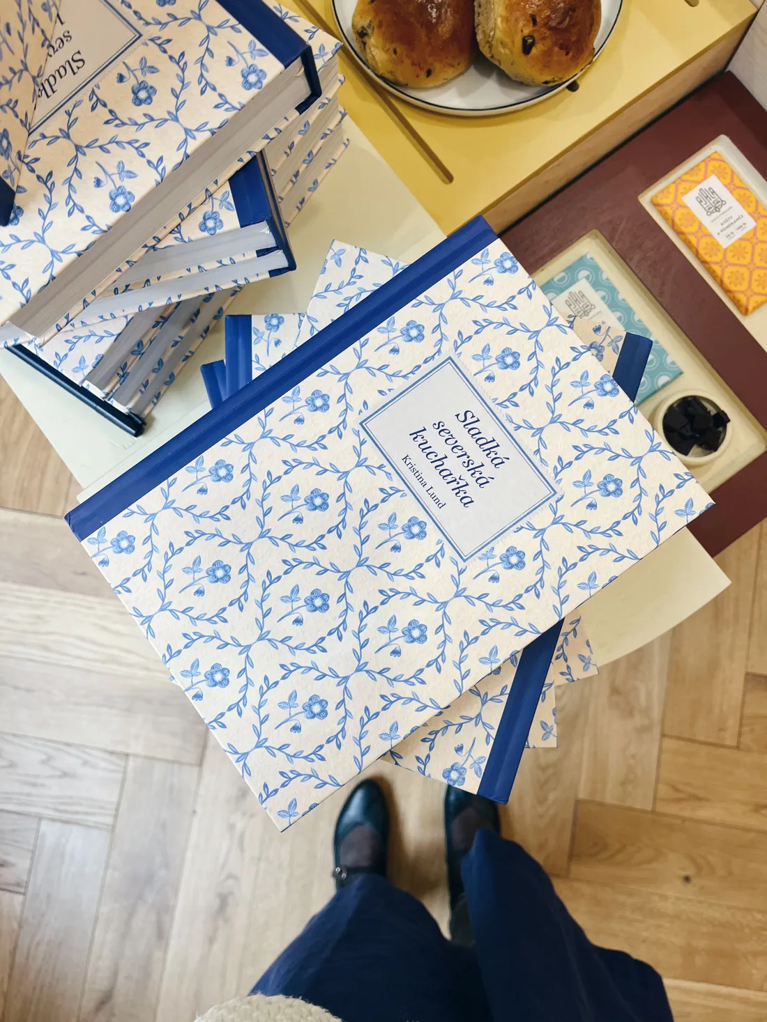 A pak už bylo půl čtvrté a za chvíli začínalo Severské odpoledne v Ajale na Husově 13. Moje kuchařka je obklopená čokoládovými dobrotami.