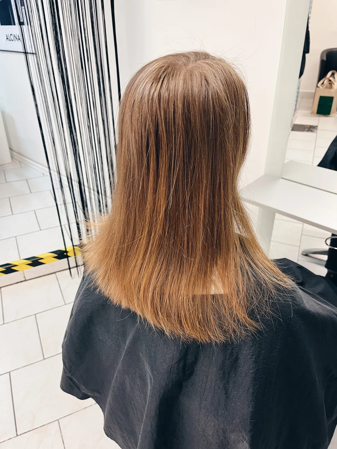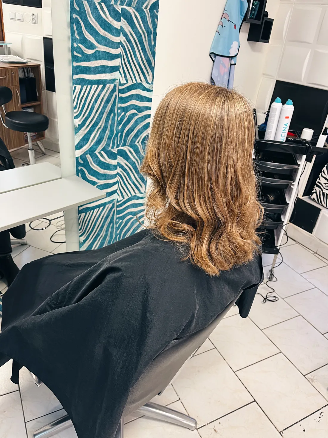 A tady je po. Použila zesvětlovač, který nechala působit jen chvíli, na nebarvených vlasech chytá dost rychle. Jemně mi zastřihla konečky a vytvořila jemné vlnky.