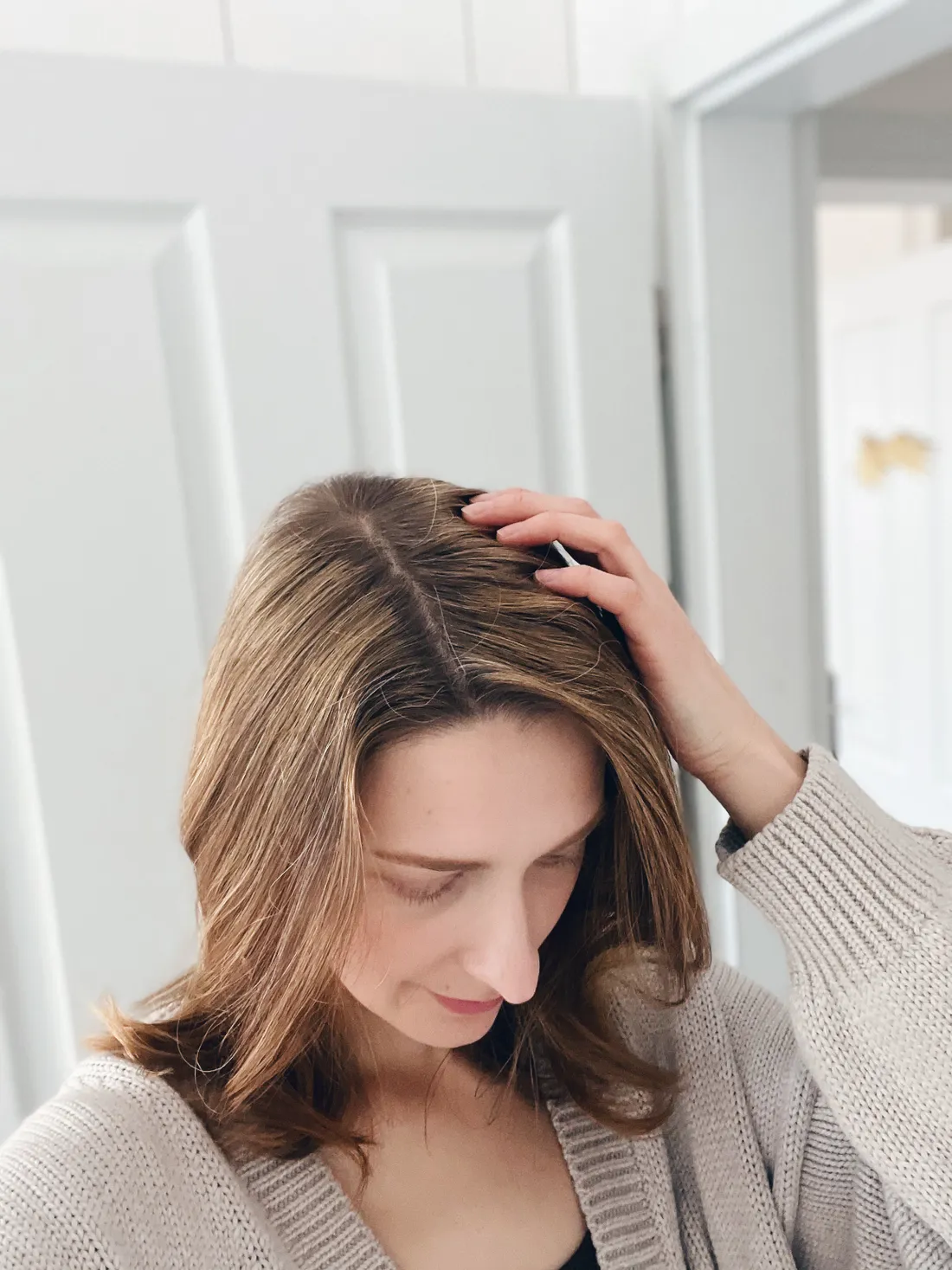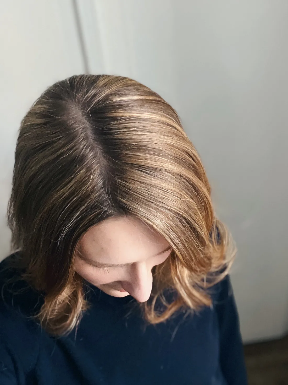 Jak to dopadlo? Šedé vlasy jsou opravdu míň nápadné, jsou promíchané se světlejšími pramínky. Barva je v délkách nádherná, krásně smíchaná s mojí vlastní teple hnědou. Takže cíl je splněn 👌🏼
