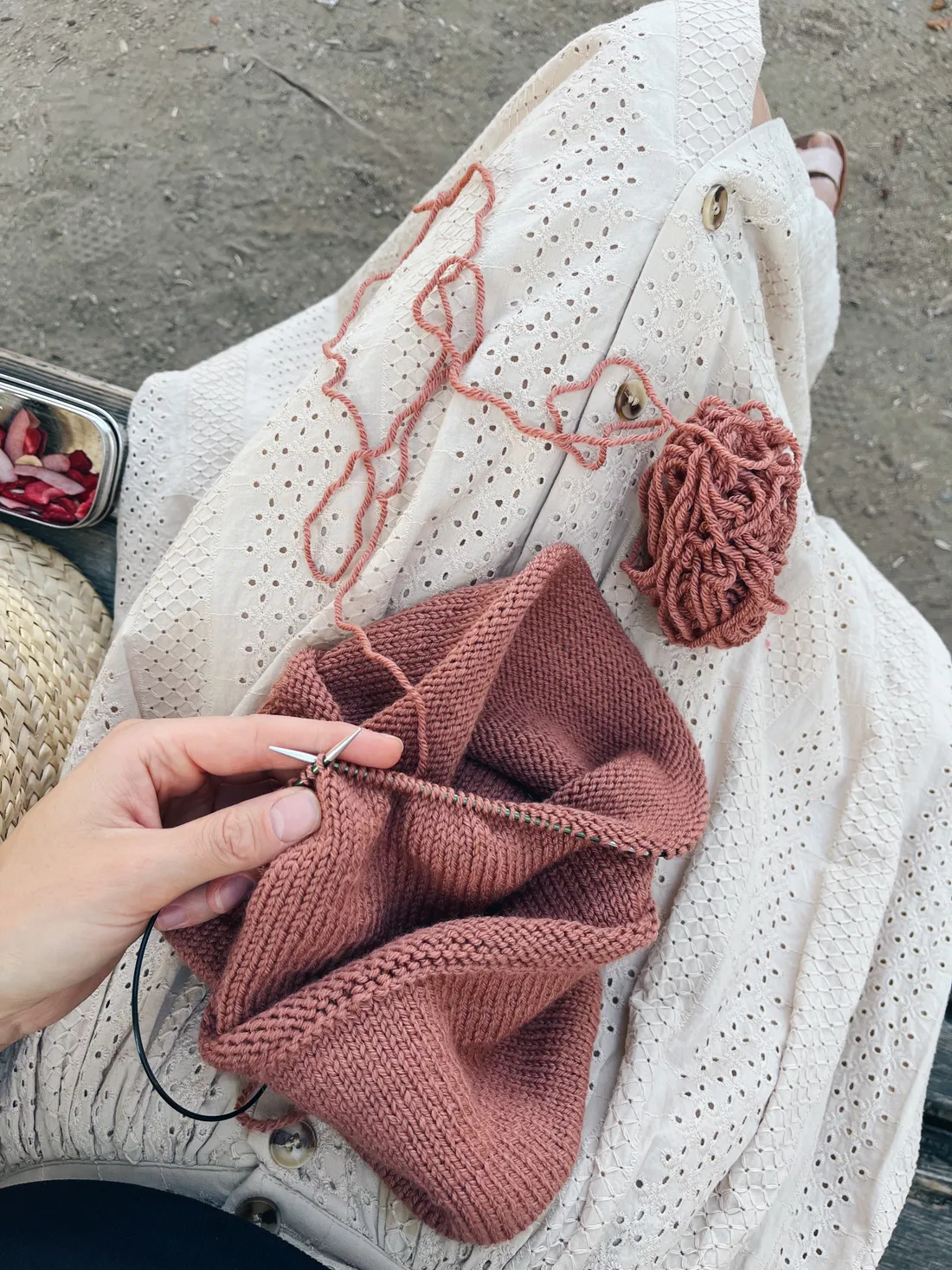 Jakmile přijde srpen, moje mysl se upíná k pletacím projektům. Vytáhla jsem čepici, mám ji rozpletenou už od ledna, a pletení s sebou beru víceméně všude. I na hřiště, sice zvládnu jen pár řad, ale i to se počítá.