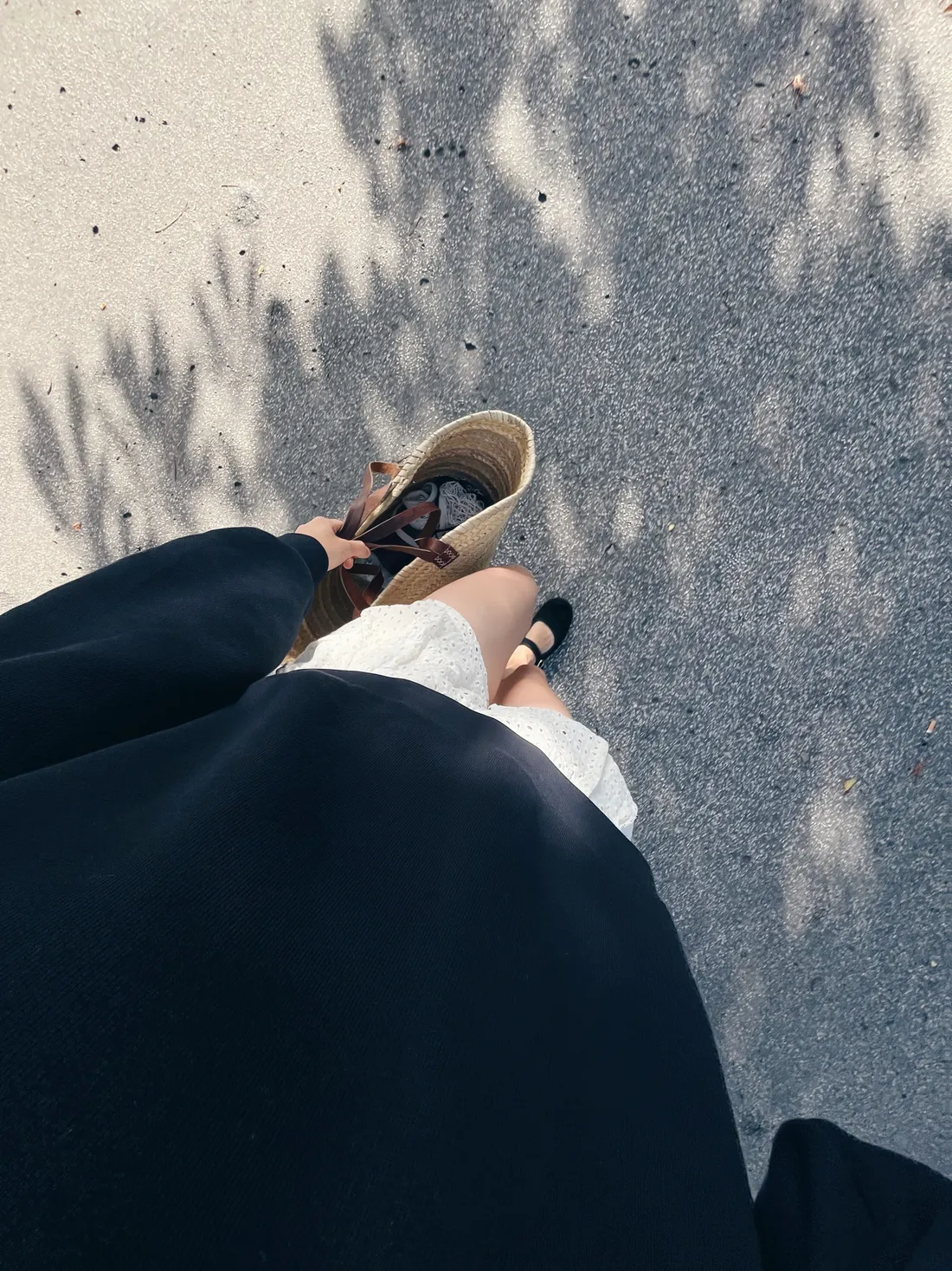 Po ránu bývá chladněji, vytáhla jsem svou oblíbenou mikinu z NILY a letité madeirové kraťásky. Tahle kombinace barev a materiálů mi přišla velmi dánská.