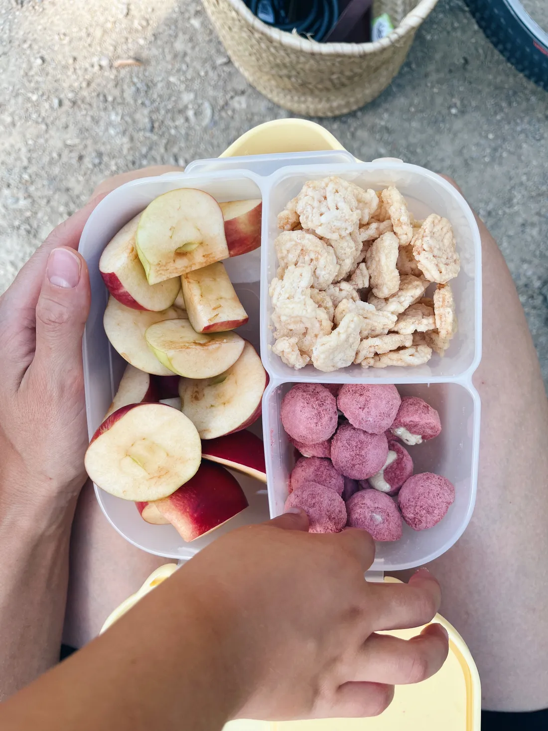 Svačinky pro děti na hřiště, tady je slétly jak vosy na jahodové-kešu kopečky, co chutnají jak zmrzlina. Nedivím se jim :)