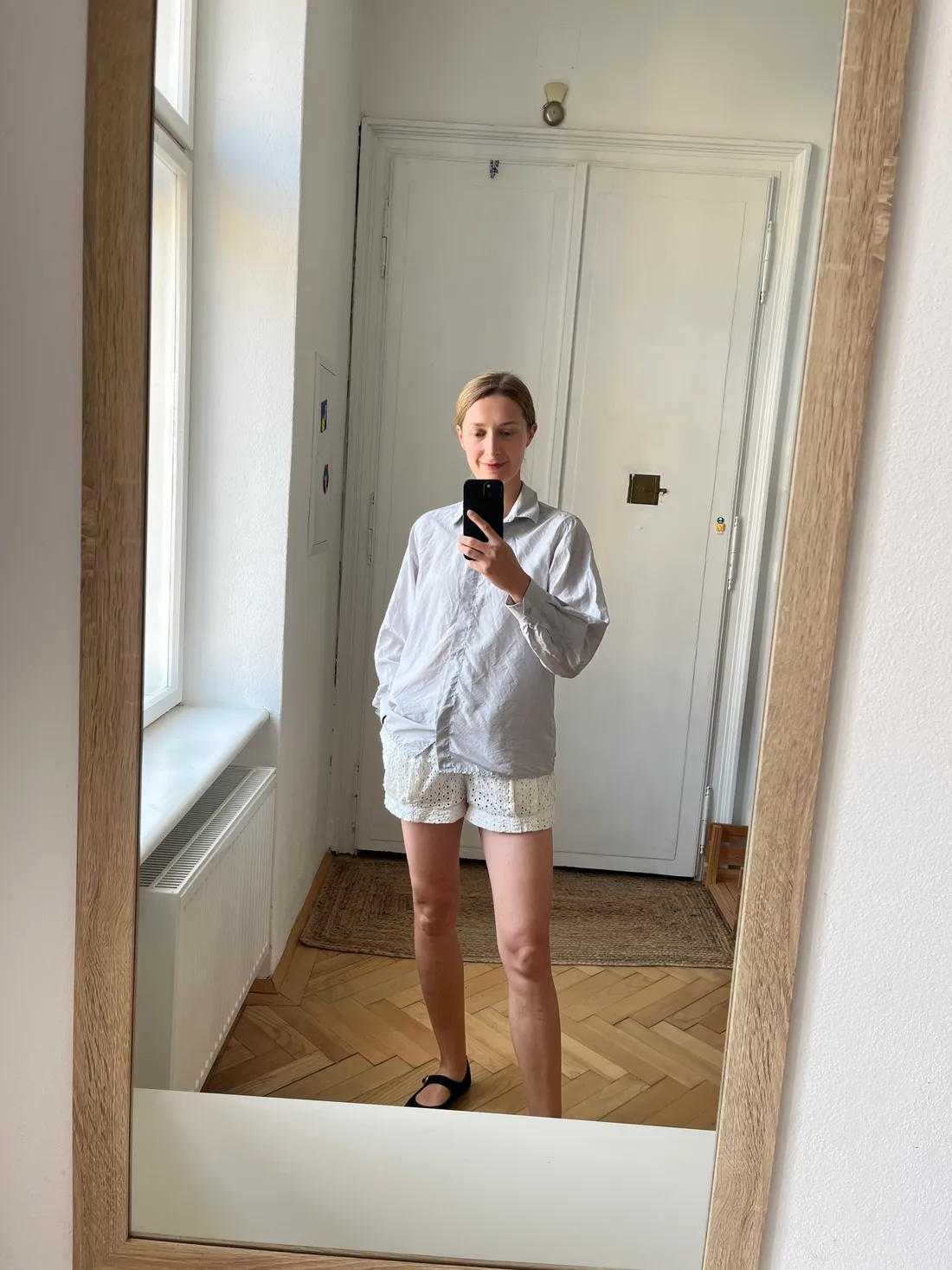 V sekáči jsem narazila na spoustu jemných hedvábných košil. Moc ráda je nosím, protože jsou lehounké a krásně odráží světlo. Tuhle jsem si nechala pro sebe a ty zbylé najdete na mém Vinted, pojďte si některou vybrat :)