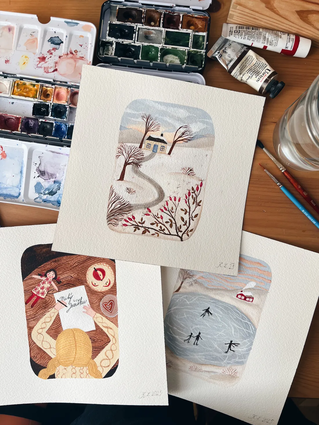 A tady už mám hotové tři pohledy, co na ně říkáte? Budu je mít na eshopu někdy v říjnu/listopadu.