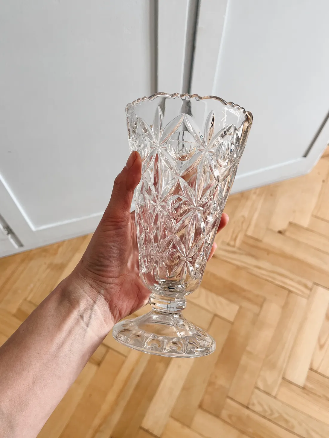 Přišla váza, kterou jsem za 30 Kč našla na Vinted. Sice je dole malinko naprasklá, ale vodu naštěstí nepropouští. Hledala jsem přesně takový tvar, na nožce a aby se nahoře rozšiřovala. Myslím, že v ní budou krásné třeba tulipány.