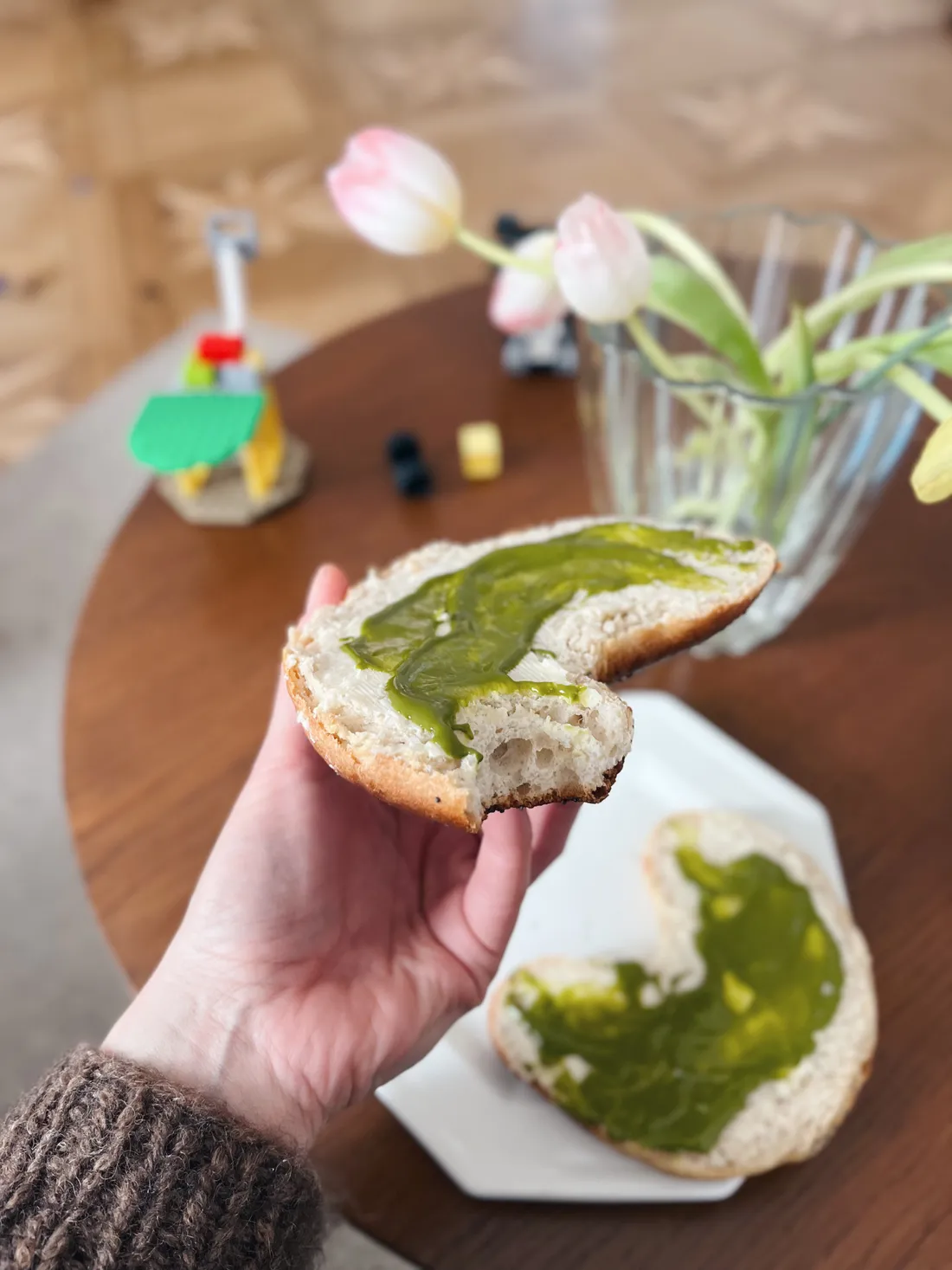 Ke svačině jsem dojídala loupáček s pistáciovým máslem.