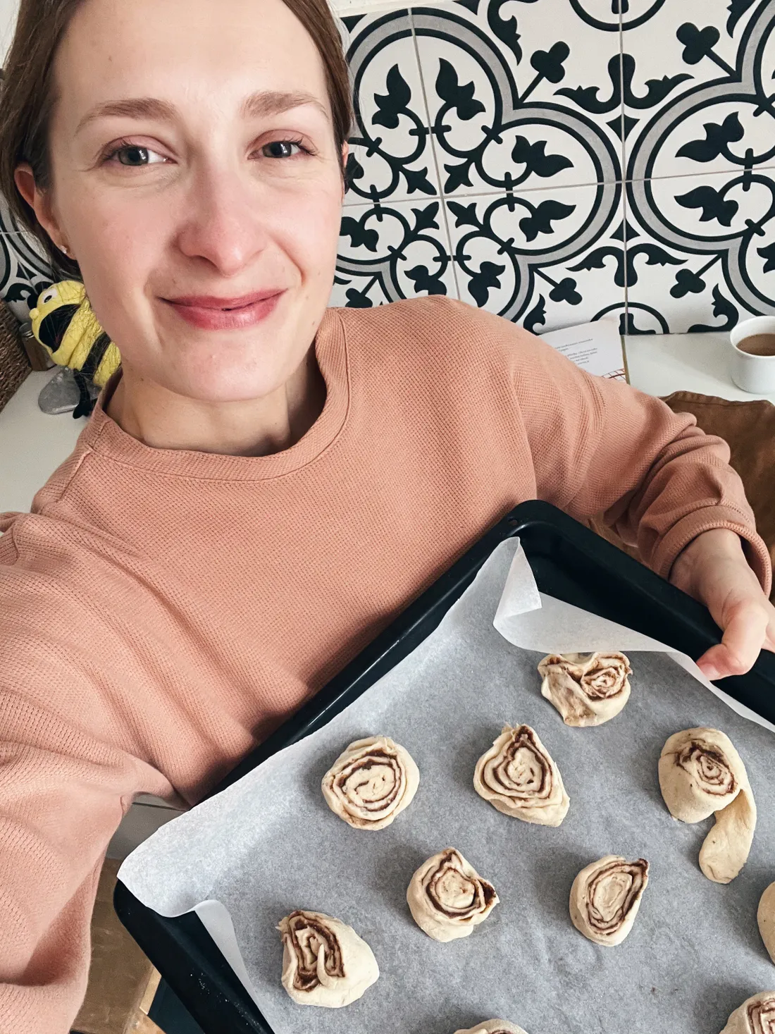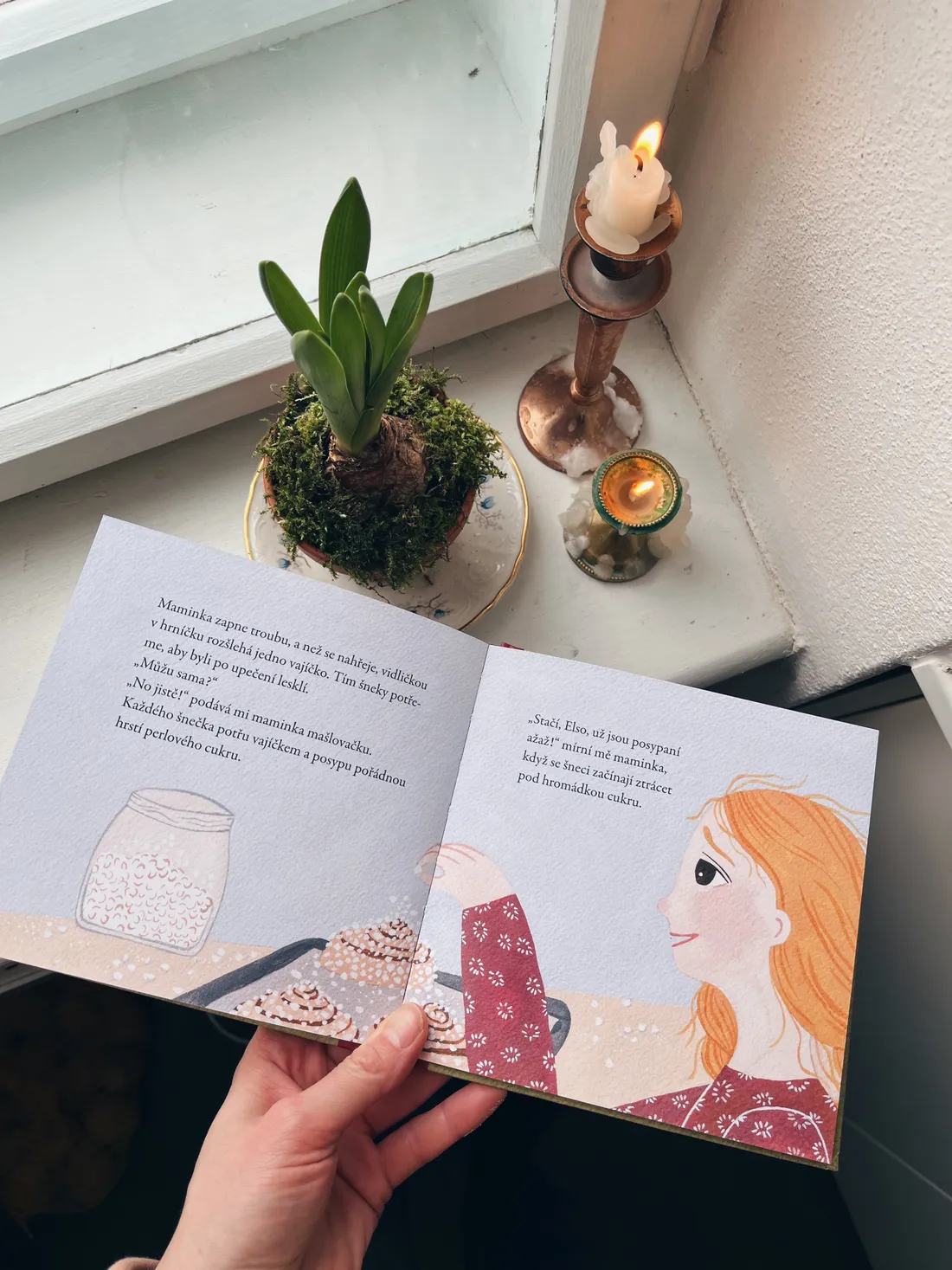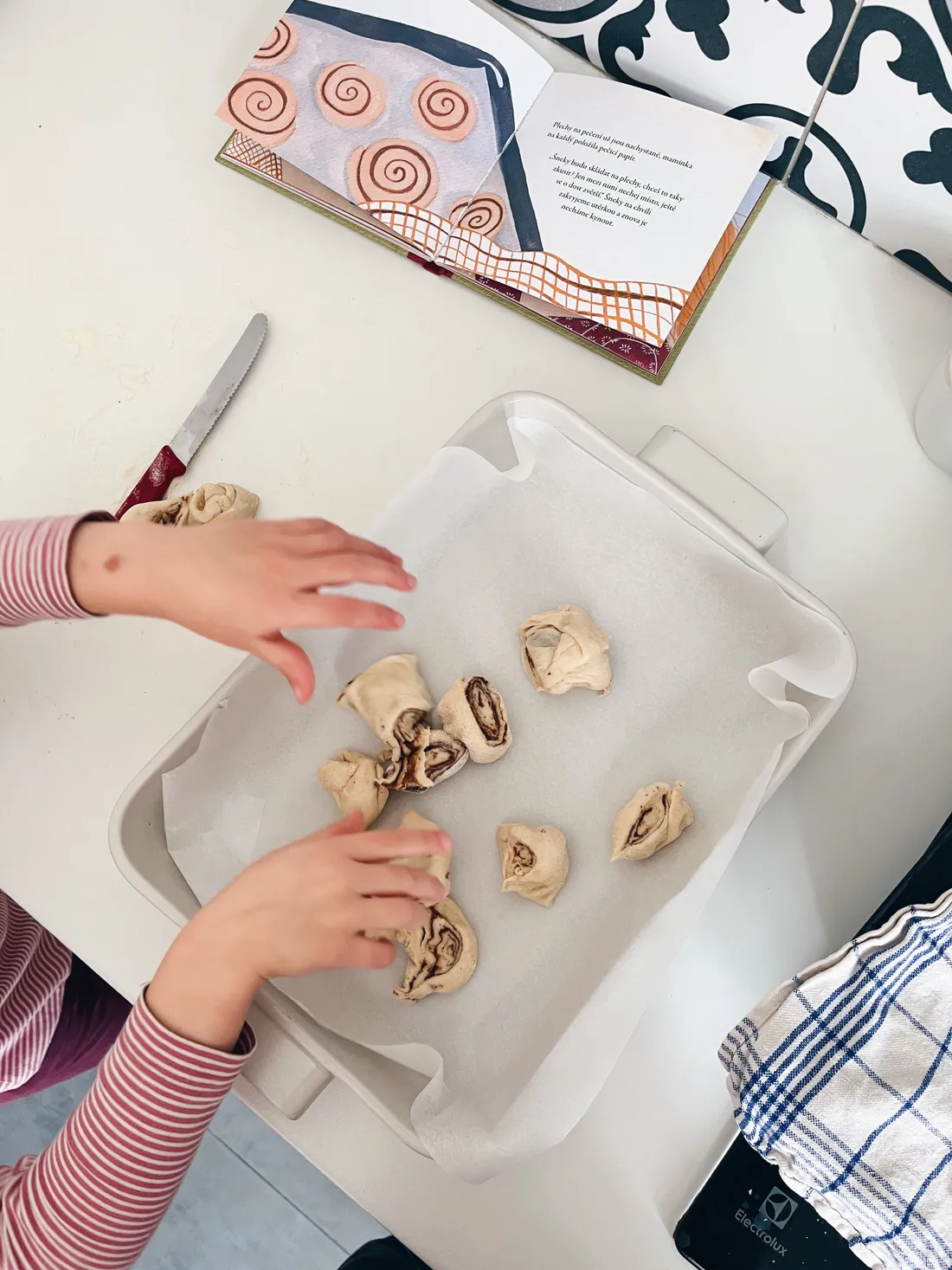 Po obědě jsme s dětmi pekli šneky podle knížky o Else. Každý byl jiný, každý jinak posypaný cukrem a v těstě děti dokonce udělaly díru, jak je to v knížce. Dcera je do formy spíš házela než skládala :)