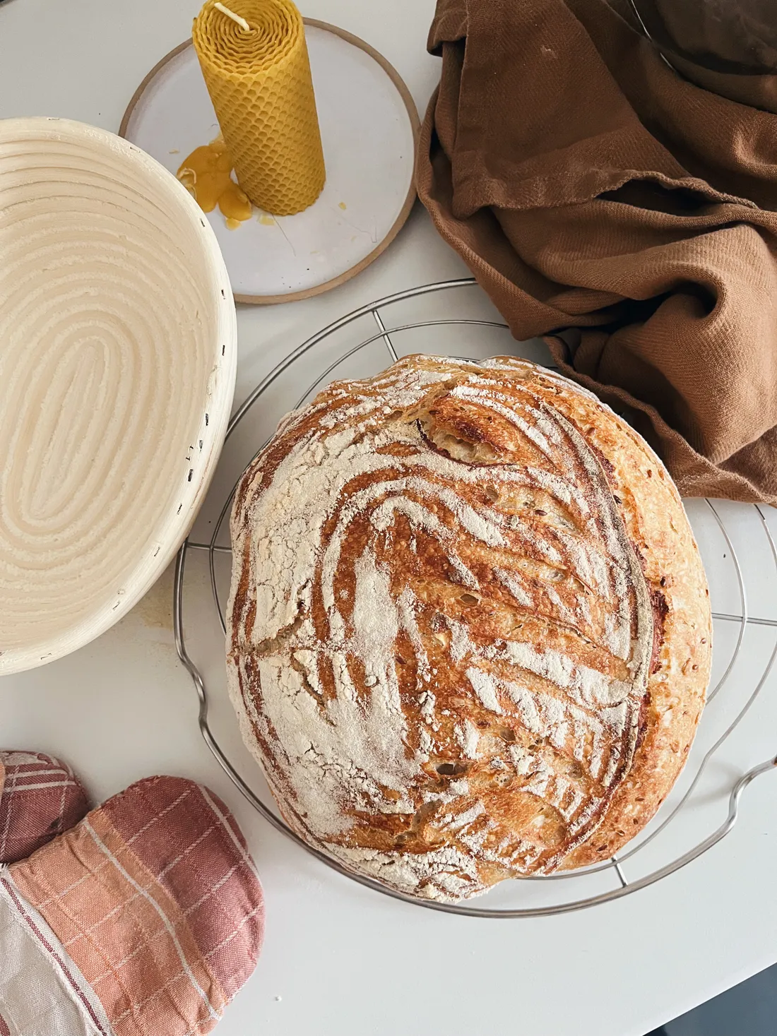 Po dlouhatánské době se mi povedl nadýchaný kváskový chleba, který zmizel ještě ten den. Je v něm většina hladké mouky, trochu špaldy a hrst ovesných vloček.