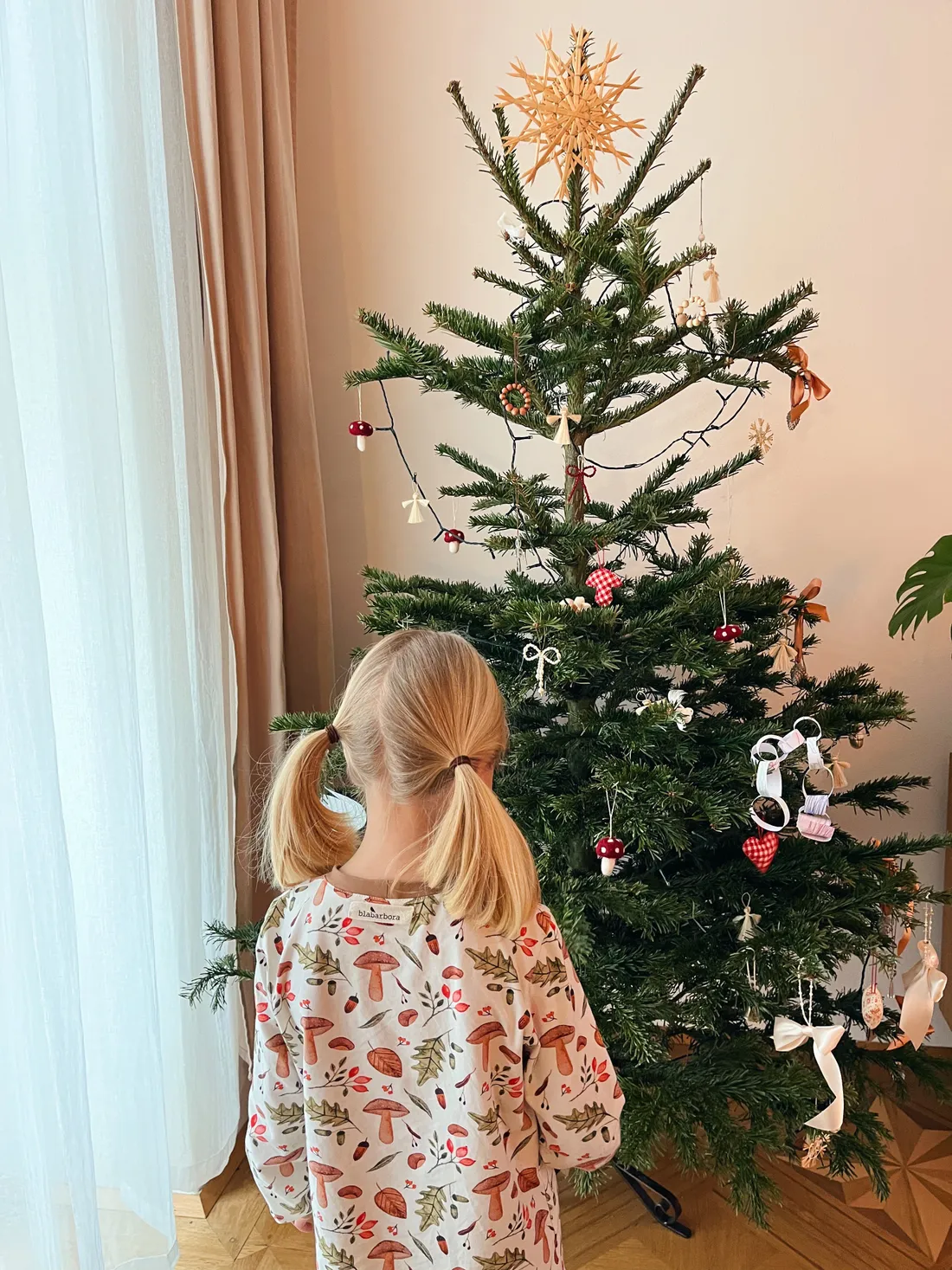 V sobotu ráno jsem vyfotila dcerku u stromečku, pořád ho máme, ještě týden nebo dva s námi bude.