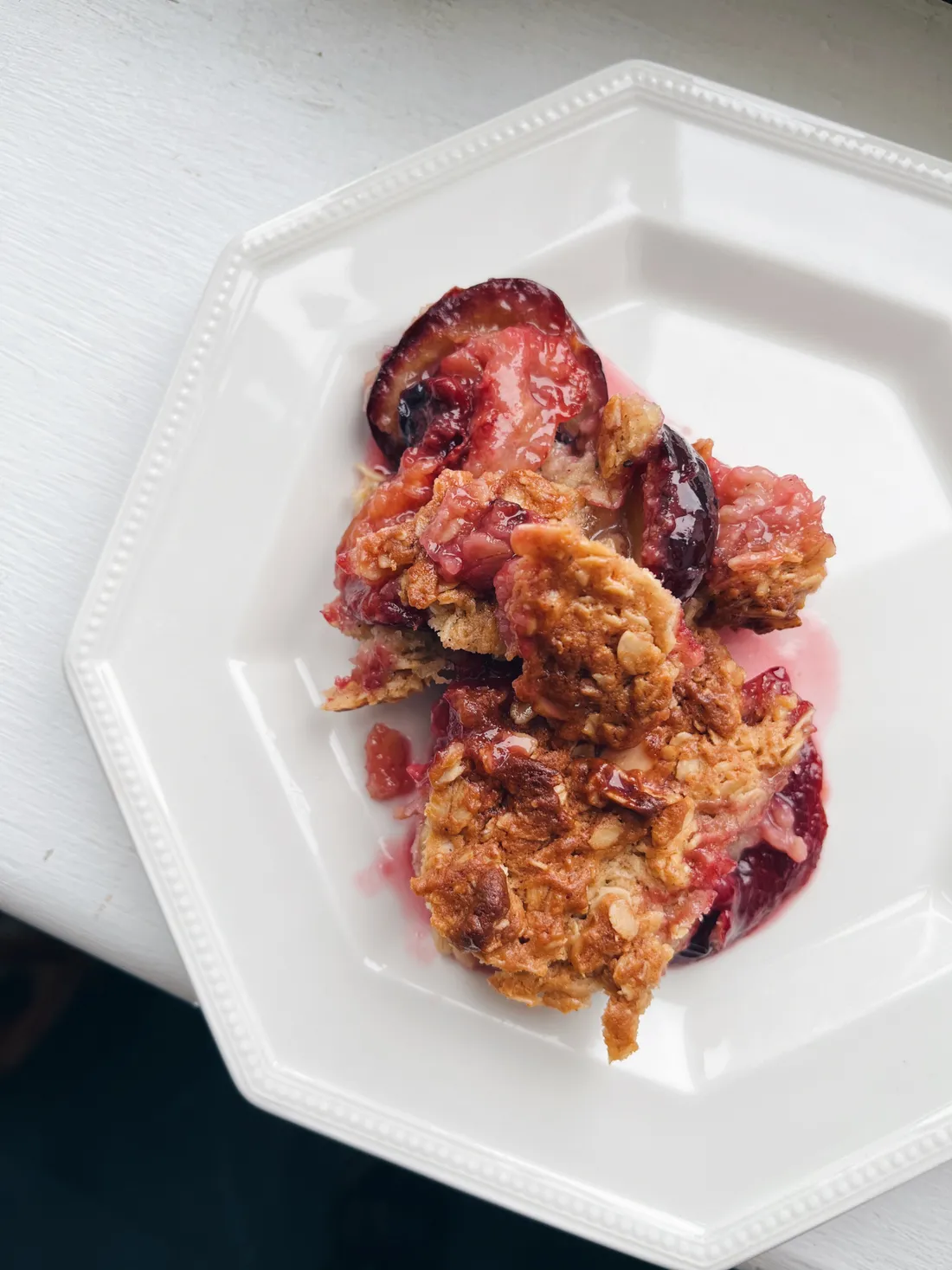 V mrazáku jsem měla spoustu švestek z léta, tak jsem upekla křupavý švestkový páj s kardamomem (je to recept ze Sladké severské kuchařky, ale v ní je s jablky). Ke švestkám jsem přidala ještě lžičku škrobu. Díky tomu se ze šťávy, kterou švestky pustily, stal slaďoučký švestkový sirup.