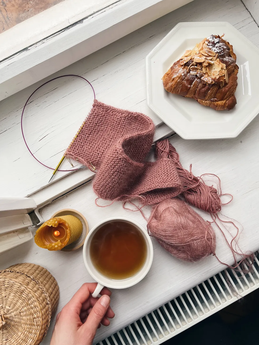 Dala jsem si mandlový criossant, chvíli jsem pletla měkoučký vlněný šáteček a popíjela mátový čaj.