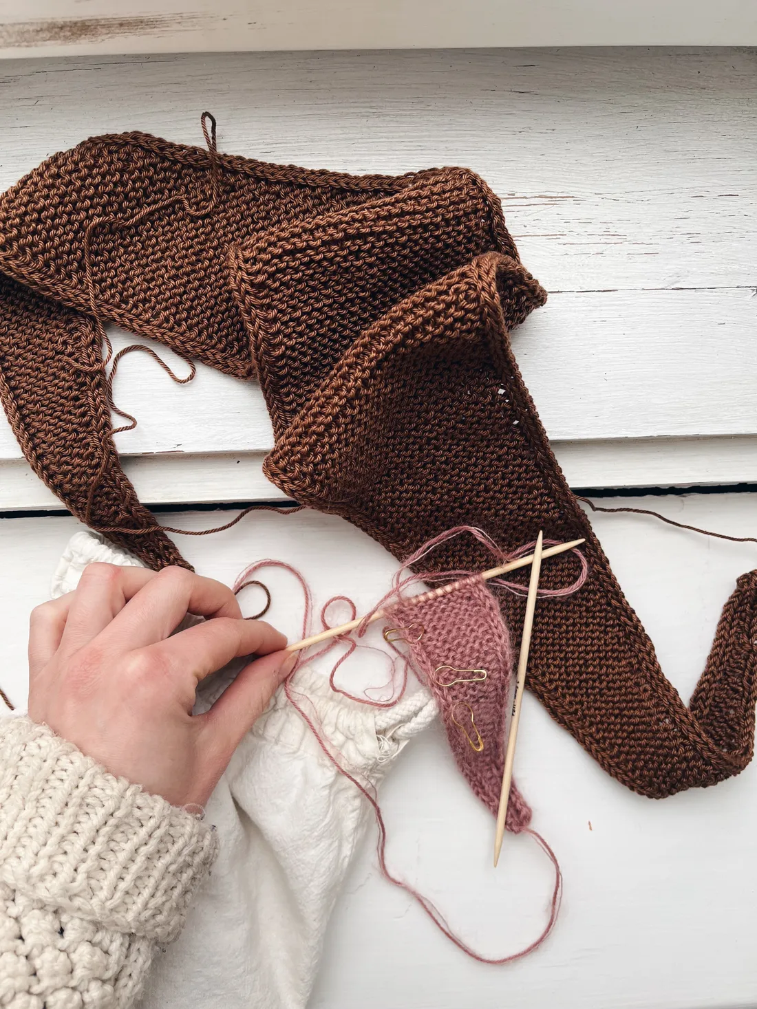 A zase trocha pletení. Hnědý šáteček bude pro mě.