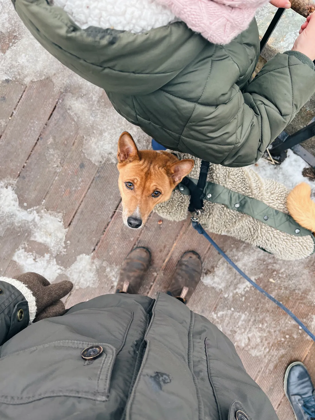 Syn šel na výpravu se skauty, my zbylí jsme plánovali výlet ke Spálenému mlýnu, pár kilometrů vzdálené restauraci v Gránicích (údolí pod Znojmem). Ale všechno bylo tak namrzlé, že se do údolí nedalo sejít, proto jsme si dali krátkou procházku městem. Čoty ťapkal s námi.