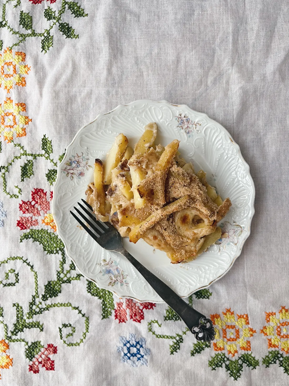 V úterý jsem upekla Janssonovo pokušení, tradiční švédské zapečené brambory ve smetaně se šproty a cibulí.