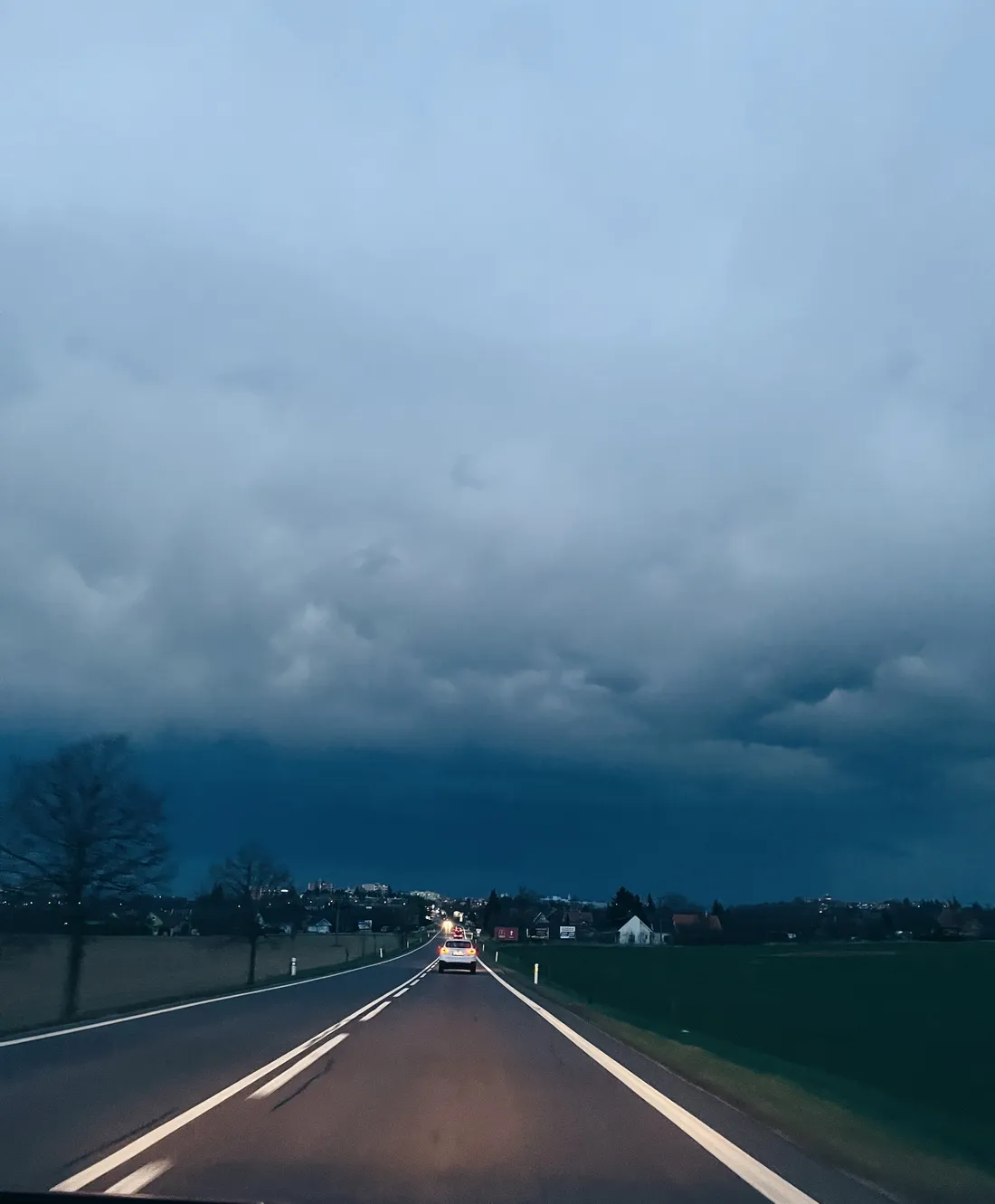 Odpoledne jsme předali děti a psa manželovým rodičům. Po cestě domů bylo temné nebe a pořádné blesky, ale bouřka nás nakonec minula.
