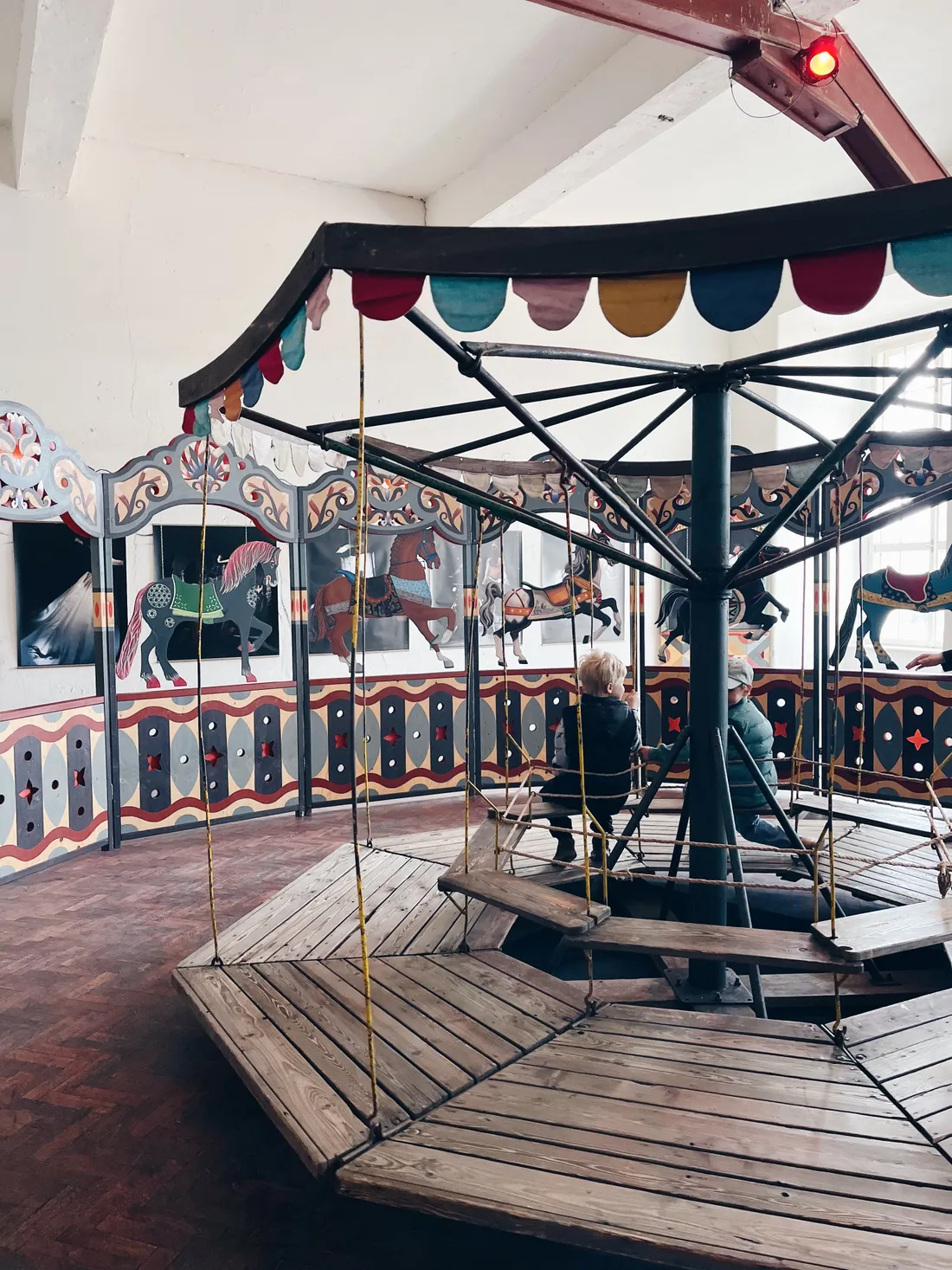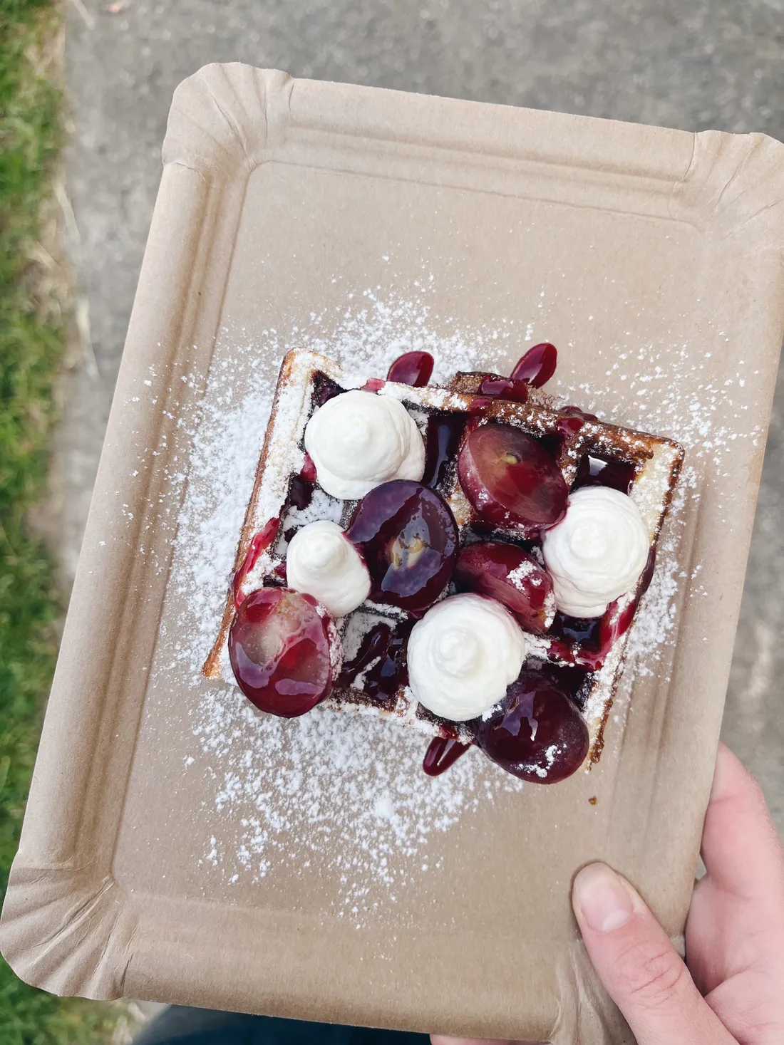 Dole, pod výstavou, je kavárna, kde dělají čerstvé vafle.
