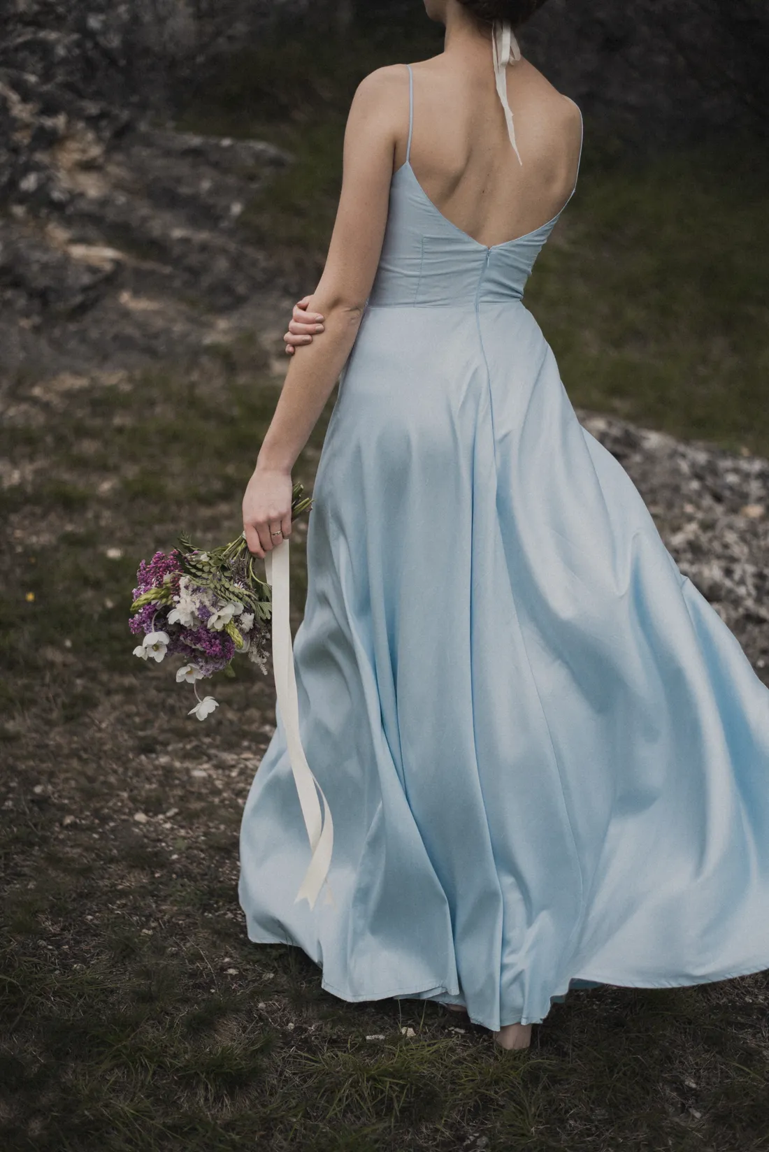 Neměla jsem bílé, ale nebesky modré hedvábné šaty od talentované Marušky Mukařovské.