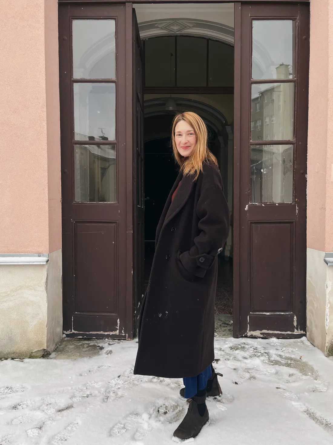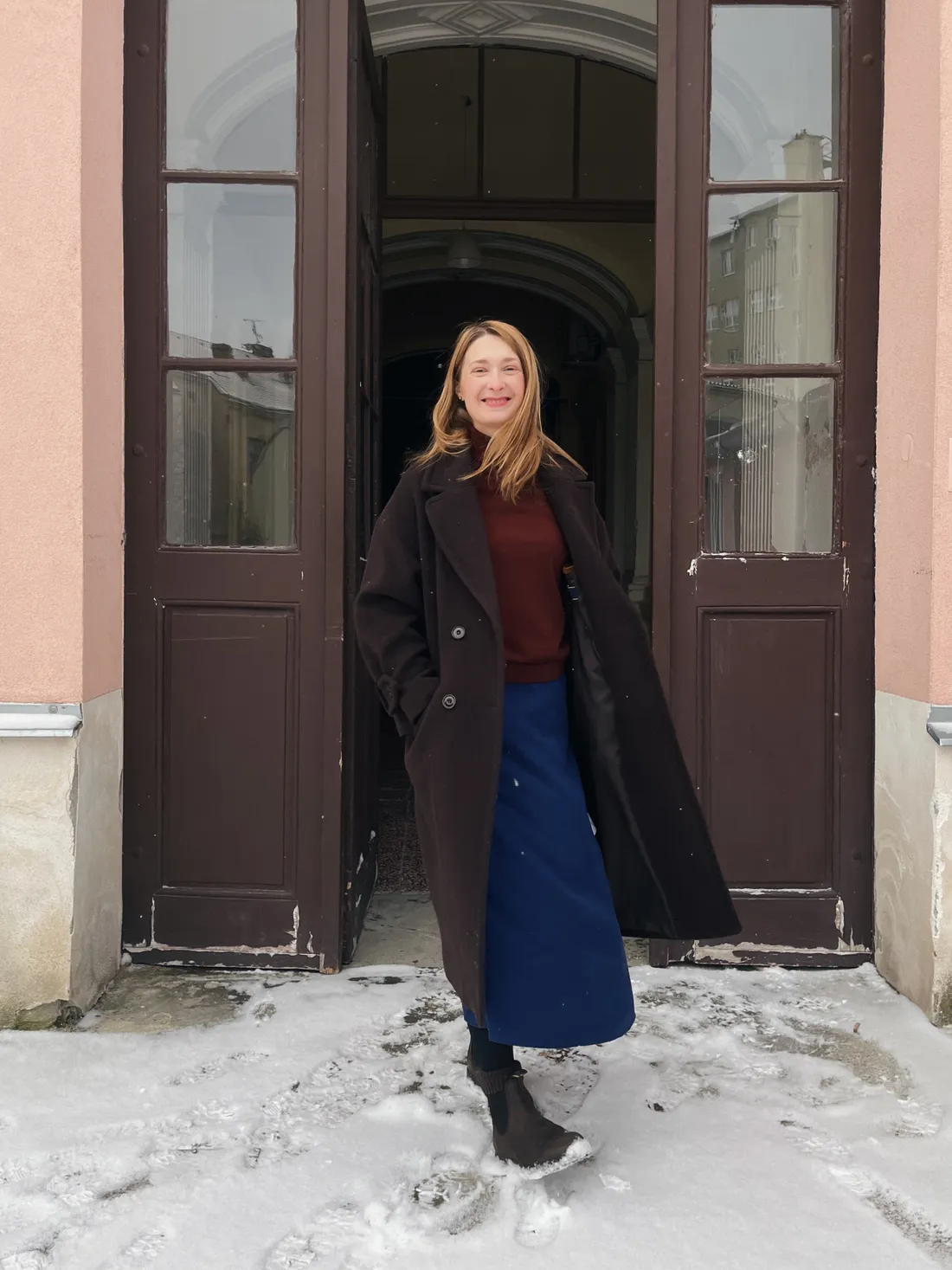 Je velká zima, tak jsem pořádně nabalená v teplých vrstvách.