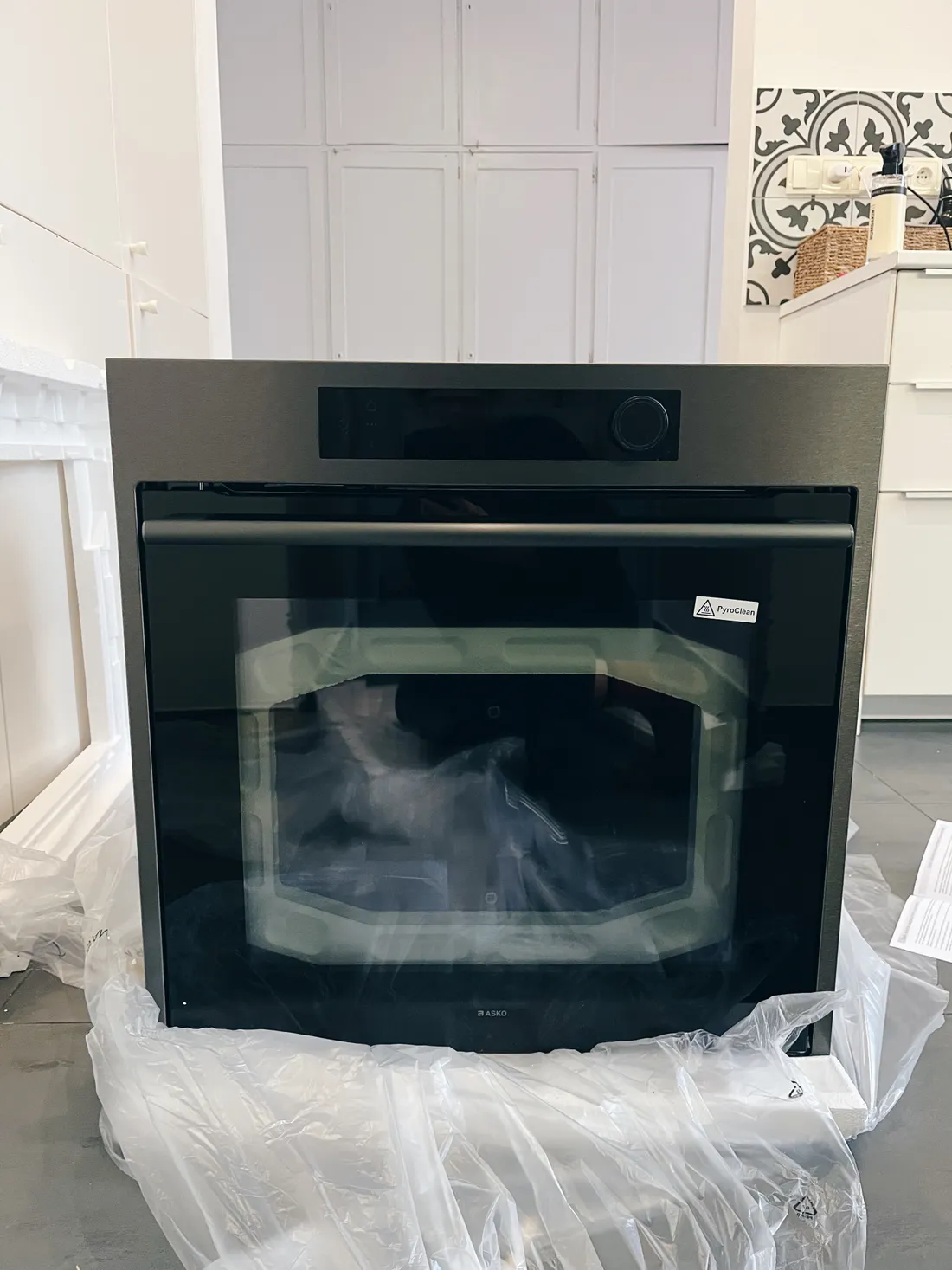 A najednou mi volá přepravní služba, že vezou moji troubu: Hurá hurá! Dva pánové my ji vynesli do patra (má kolem 40 kg), odvezli si tu starou nefunkční a nechali mě doma objevovat tuhle krásku od švédské značky Asko (pozor, není to Asko nábytek!).