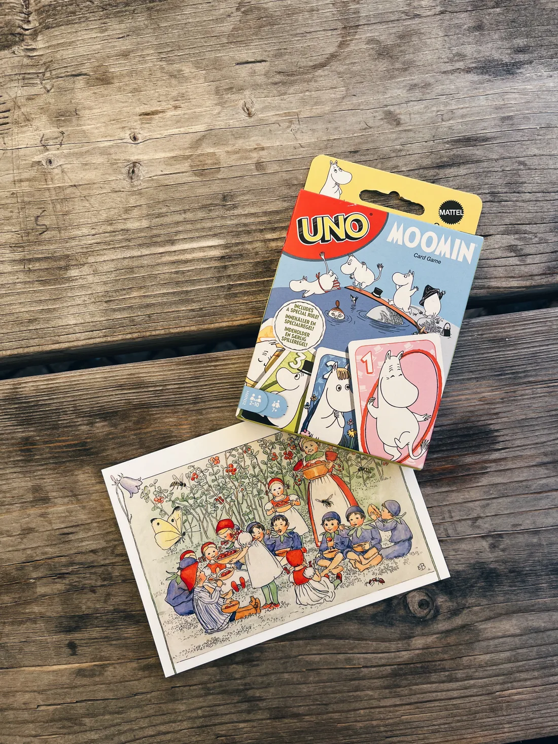 Ale hlavně jsem chtěla dětem přivézt Uno s mumínky, na které jsem natrefila až ve 3. knihkupectví. Ale mám ho a je krásné. A děti moc baví. Vzala jsem taky letní pohled s ilustrací Elsy Beskow dětem do pokojíčku.