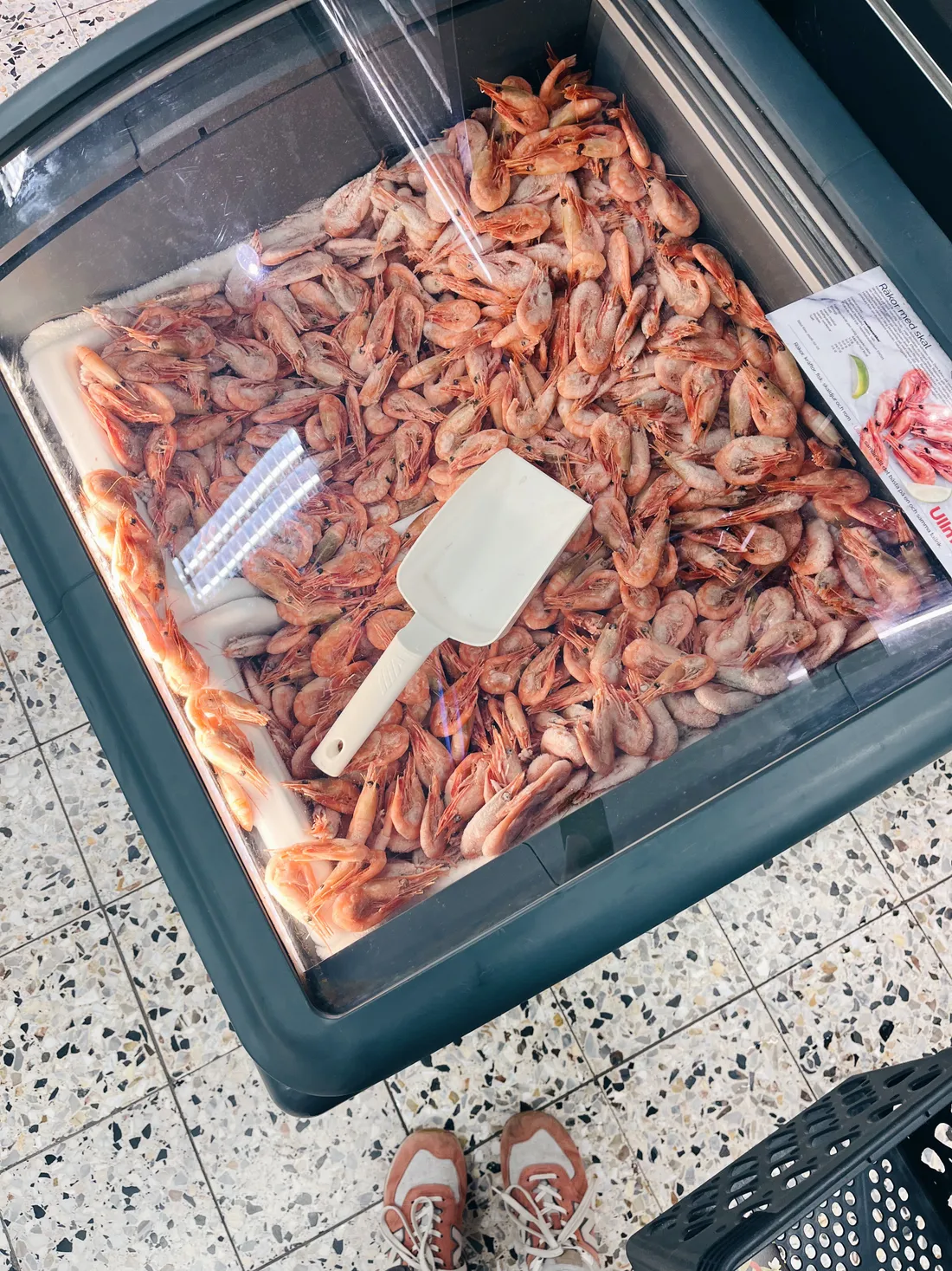 Zamířila jsem do potravin a zaujaly mě krevety, které si tu koupíte na váhu.