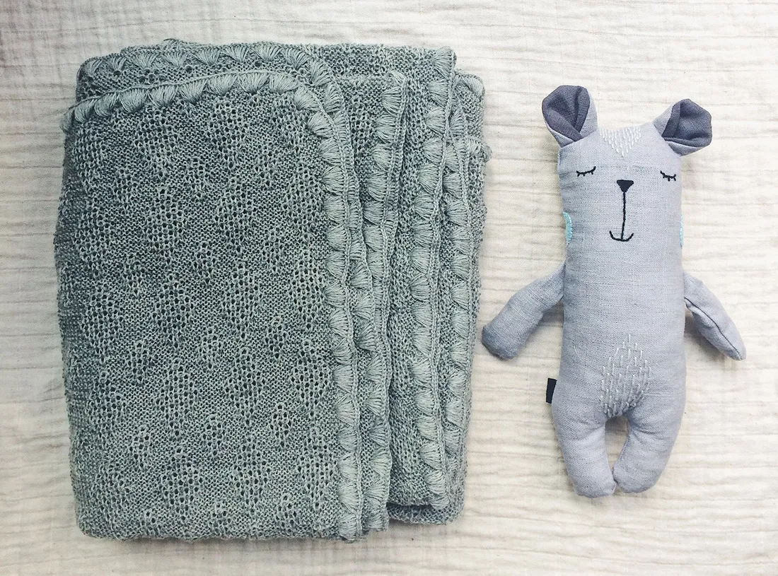 Je tu samozřejmě pár věcí, na které se moc těším. Moje maminka nám věnovala šedou merino dečku do kočárku, tchýně šije dětské povlečení a zavinovačku a už jsem miminku koupila první hračku - lněného medvídka s hrkávkou (kterého chtěl náš Čoty okamžitě rozcupovat).